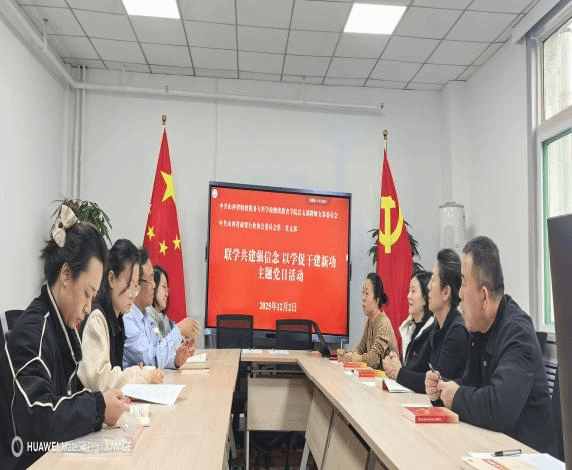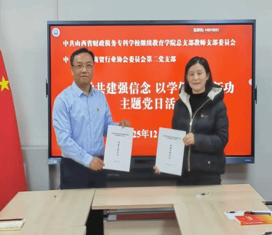会议伊始,党员们共同观看了廉洁教育片《清风吹过田野》。集中学习后,双方围绕“党建引领、资源共享、业务共促”展开深入座谈。山西省商贸行业协会委员会第二支党支部书记王仂同志介绍了山西省零售商行业协会在人才培养、社会服务等方面的成果,强调将以此次联建为契机,进一步推动党建与业务深度融合。继续教育学院教师党支部书记杨莉娟同志介绍了如何围绕“育训融合 匠心服务”打造支部党建品牌,并分享了在社会服务领域“党建引领 创新发展”的具体举措。