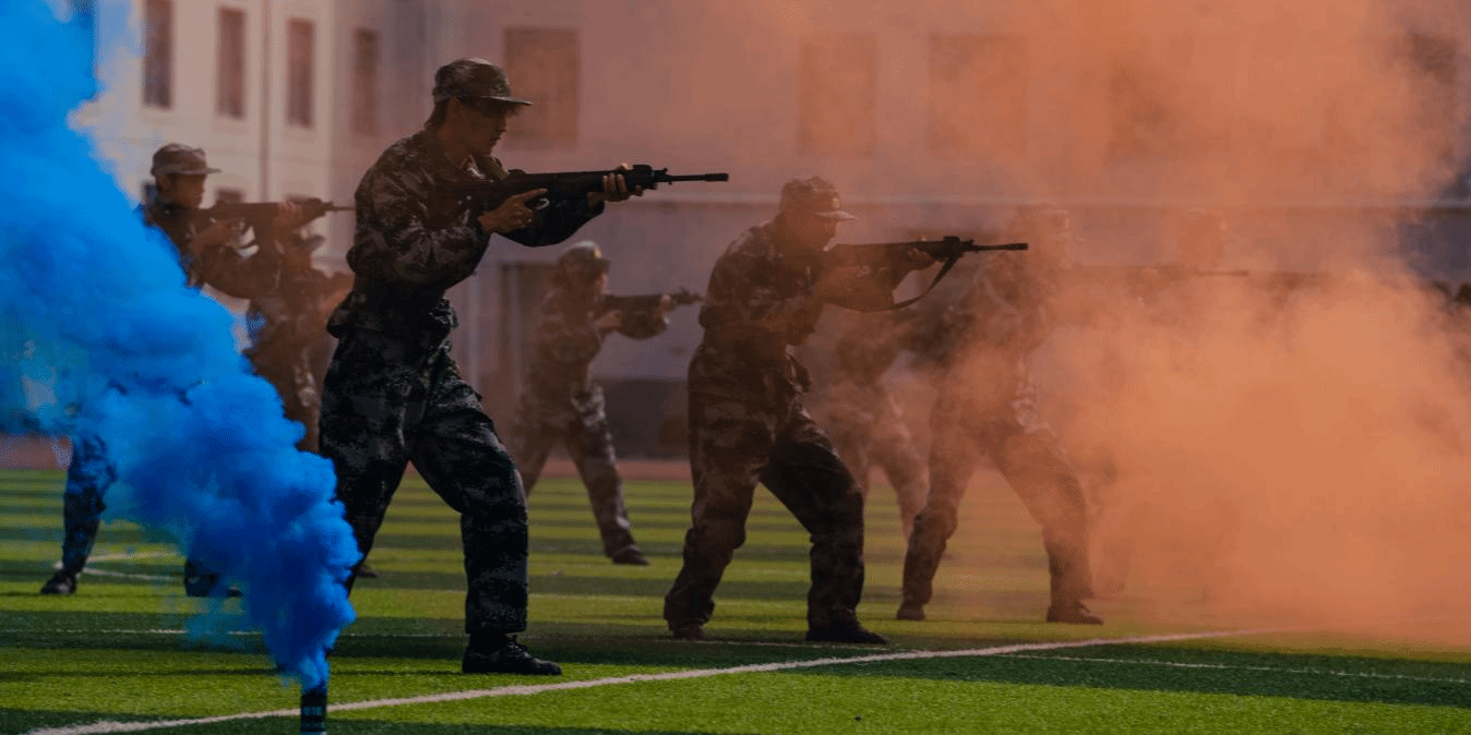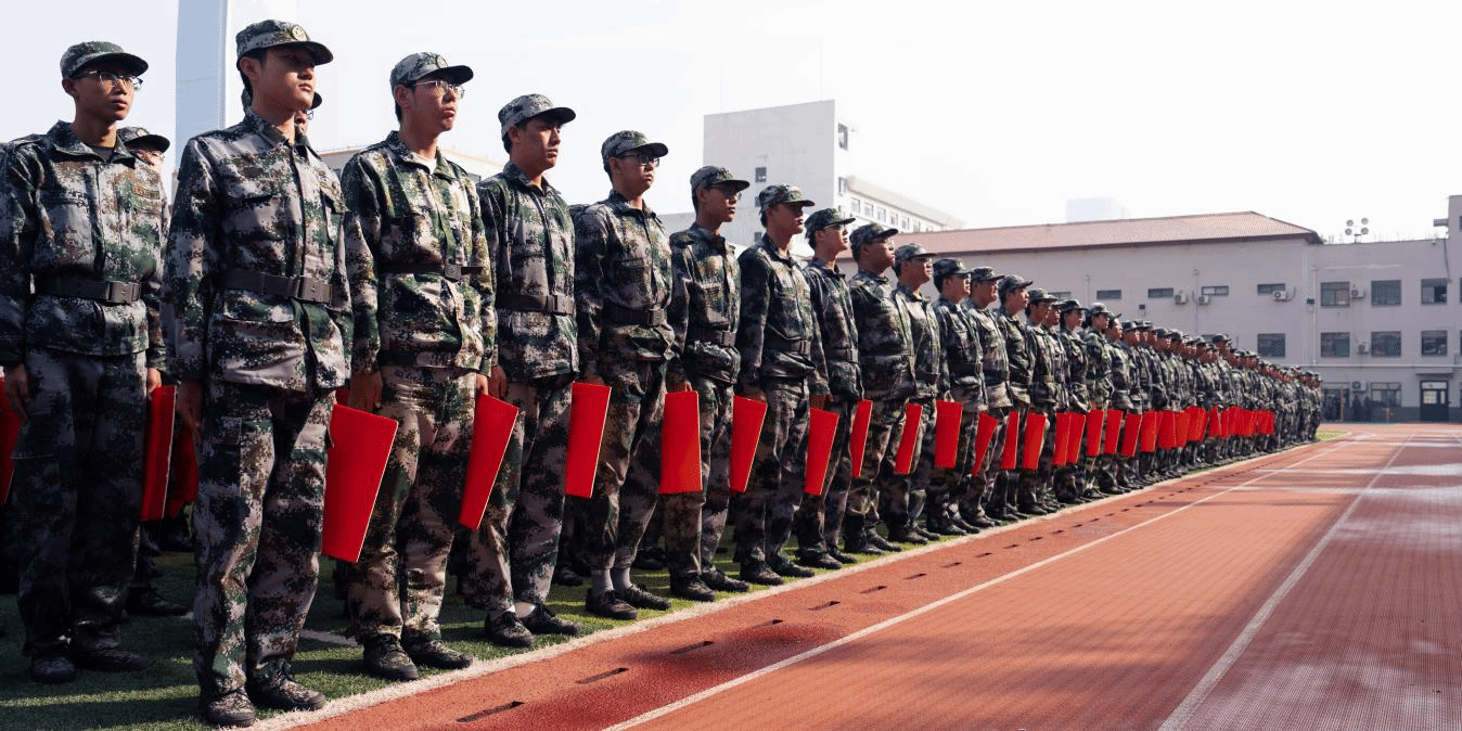 军事课目汇报将大会氛围推向高潮。参训新生身着整齐军装,军容严整、眼神坚定、斗志昂扬。战术演示时,动作精准规范,气势锐不可当;嘹亮口号响彻体育场,尽显青春力量。14天的军训成果在此刻精彩绽放,赢得了现场师生的阵阵掌声,生动诠释了新时代财专学子不怕吃苦、坚韧不拔的意志品质与蓬勃向上的精神风貌。
