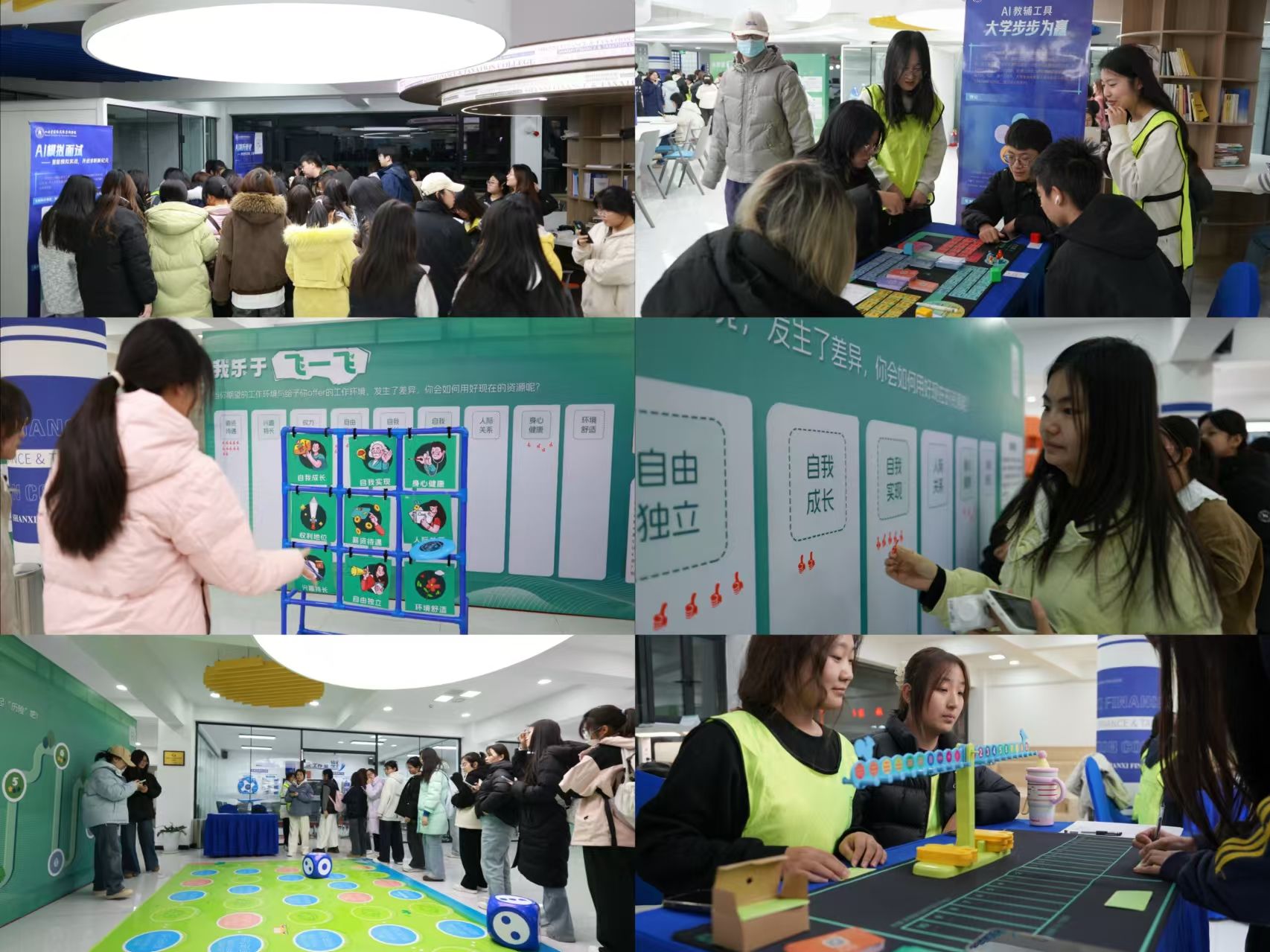 在AI赋能体验区,学生通过智能工具获取简历优化建议,参与模拟面试,收获个性化面试报告和企业推荐,实现精准投递。职业卡牌体验区融合生涯理论与卡牌游戏,借助彩虹梦想图、技能探索等六大教具,帮助学生直观了解不同职业的任务、技能与发展路径。