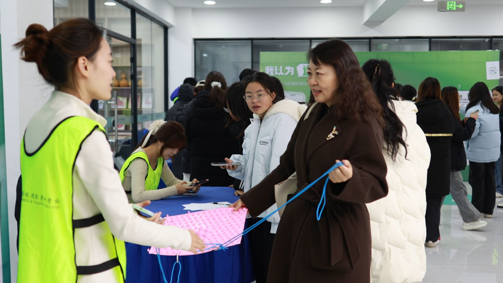 求职体验闯关区则通过一系列趣味游戏激发学生参与热情:“我憧憬闯一闯”借助生涯地图启发规划意识,“我乐于飞一飞”以飞盘投掷澄清职业价值观,“我以为选一选”用套圈游戏模拟毕业选择,还有指压板跳绳、团队协作等环节,让学生在互动中锻炼沟通、协作与问题解决能力。