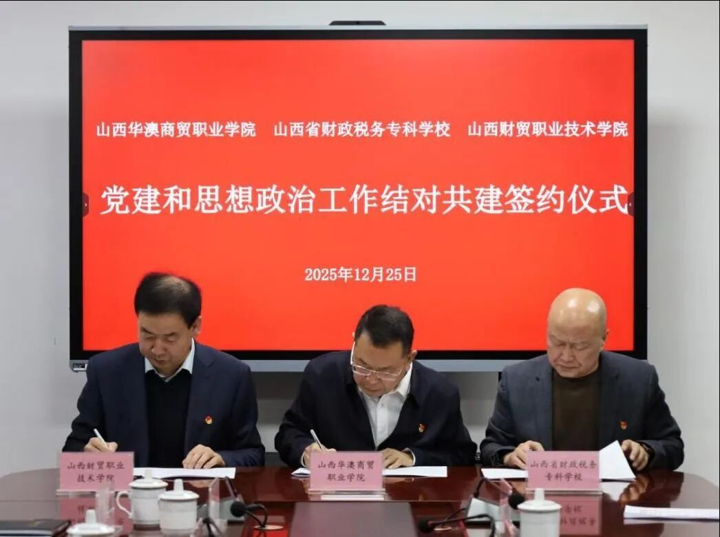 我校与山西华澳商贸职业学院、山西财贸职业技术学院举行党建和思想政治工作结对共建签约仪式