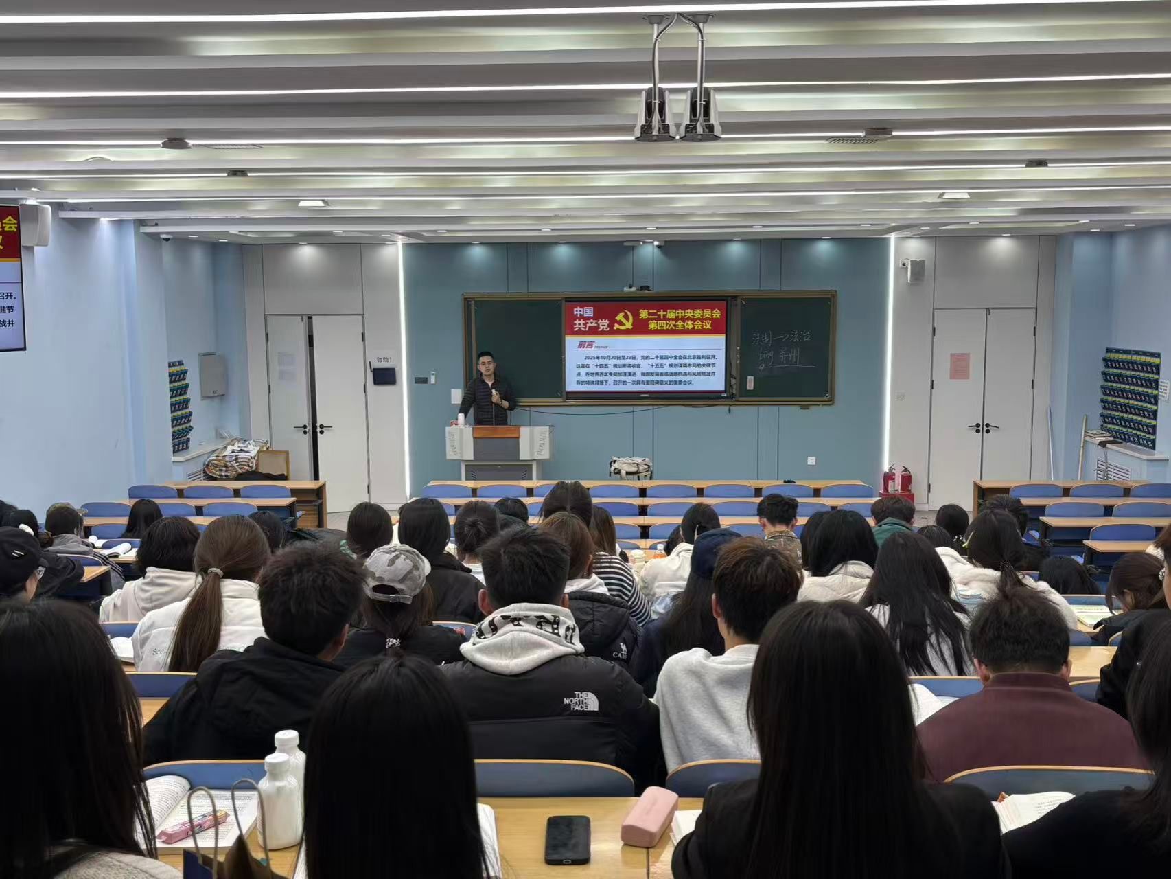 宣讲活动注重理论与现实的贯通。在阐释“制度自信”时,宣讲团成员不仅梳理理论根基,更着力展示了制度优势在应对风险挑战、推动发展奇迹中的具体体现,引导师生从“中国之治”的实践中感知制度伟力。围绕党的二十届四中全会精神,宣讲强调其对于引领国家未来发展、保障中国式现代化行稳致远的深远意义,并聚焦新时代的使命任务与战略布局,将国家发展规划与青年担当紧密相连,激发奋进动力。宣讲解读 “十五五”规划,则从文化繁荣与民族复兴的关系切入,从价值引领、产业创新、文明互鉴等多个维度,剖析了“十五五”时期文化强国建设的新内涵。