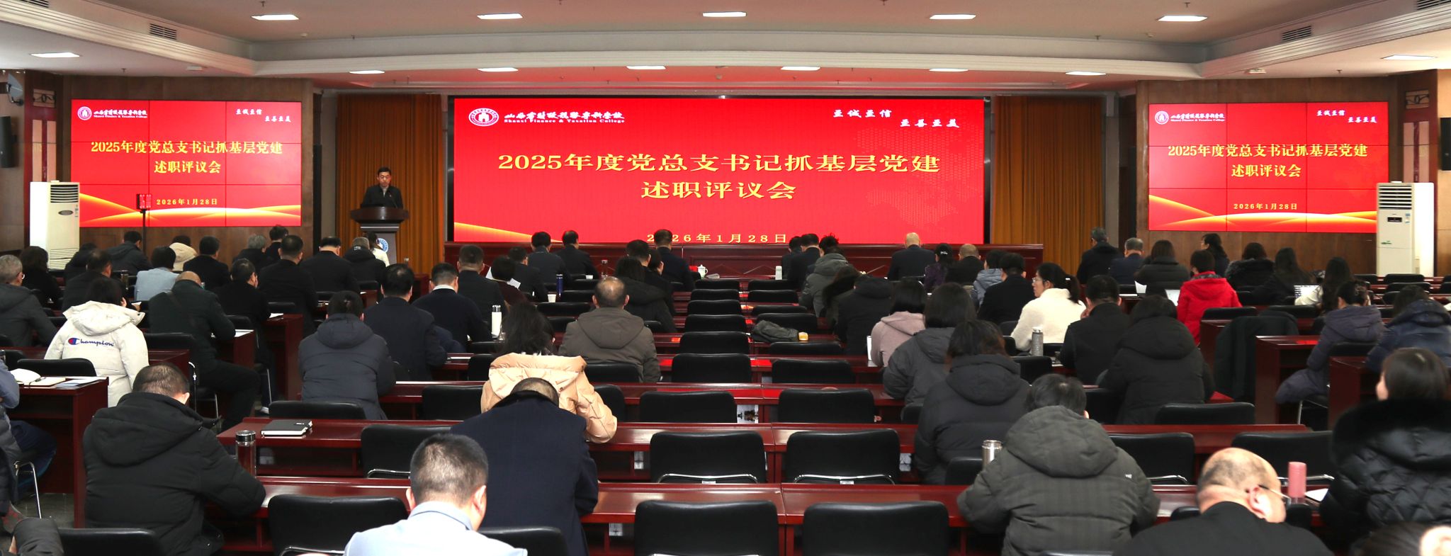 为进一步压紧压实管党治党政治责任,全面检验基层党建工作和中层干部履职成效,科学谋划新一年发展蓝图,1月28日,我校召开2025年度党总支书记抓基层党建述职暨部门负责人述职评议会。全校科级以上干部参加会议。