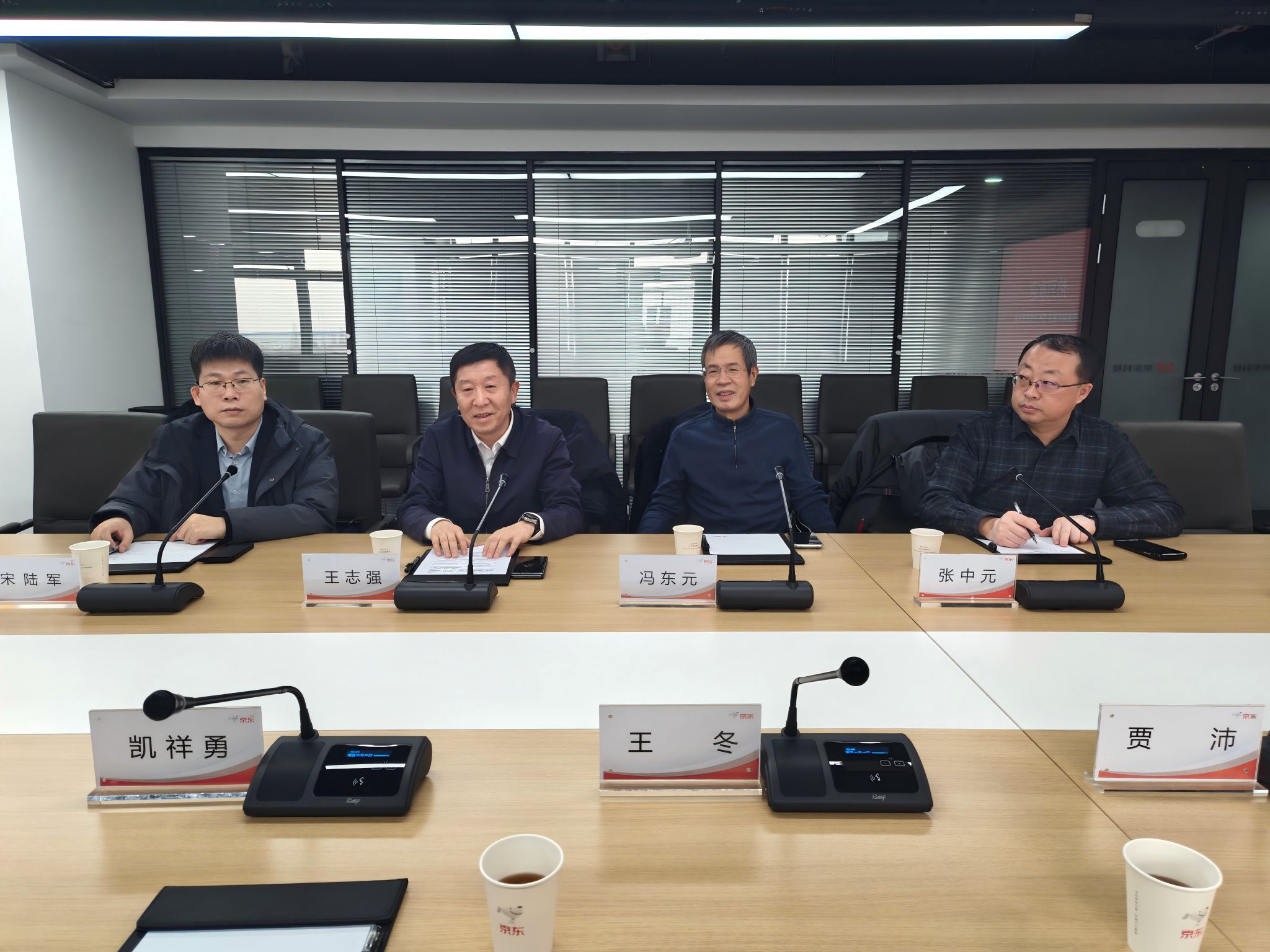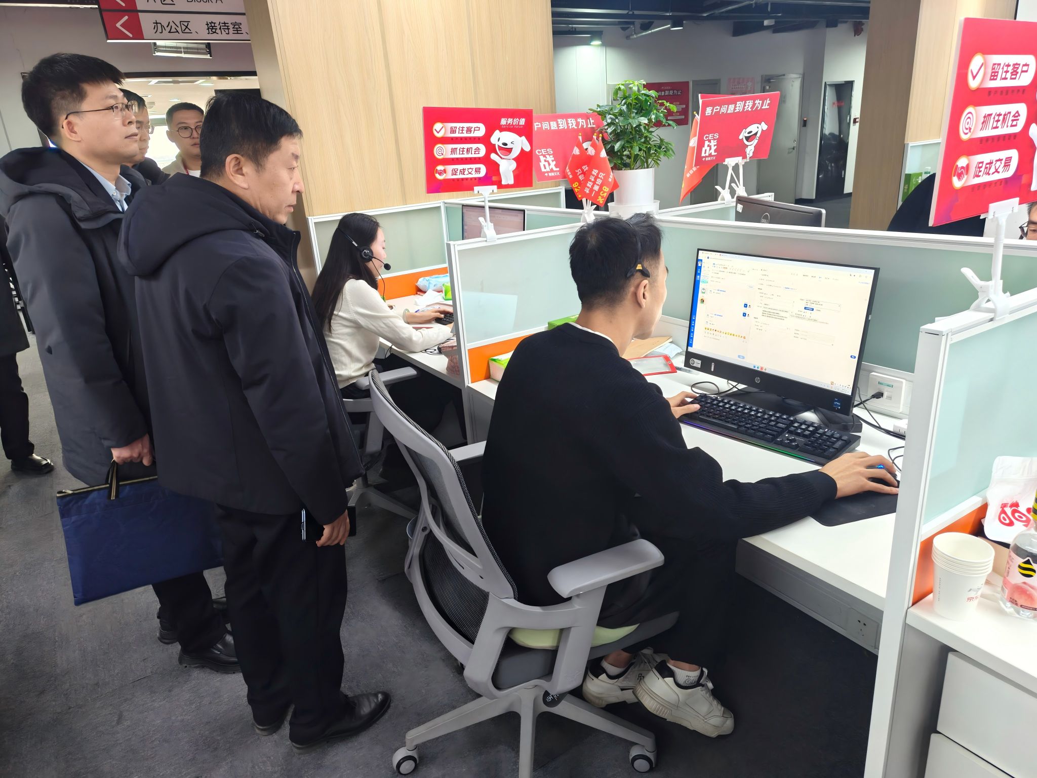 会前,在京东科技相关负责人陪同下,王志强、冯东元一行实地参观了智能资管与在线客服业务场景,详细了解相关岗位的工作内容、薪资待遇与职业发展路径,并就人工智能对就业岗位的影响、“人机交互”模式在京东业务中的应用以及高技能人才需求等话题进行了深入交流。