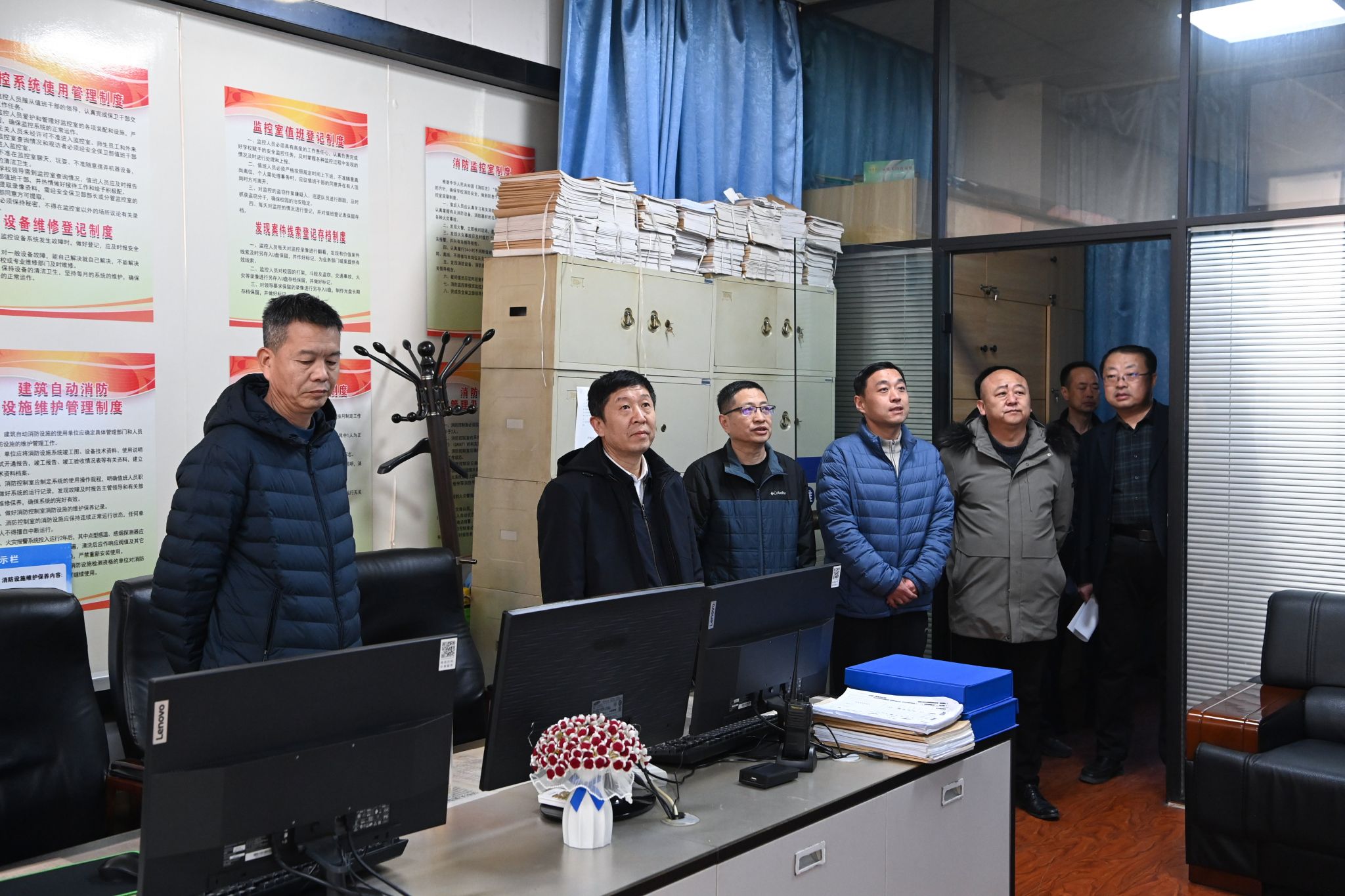 校领导一行先后来到学生公寓、校门执勤点、消防监控中心等工作岗位,与在岗职工亲切交流,详细询问假期工作安排与生活情况,充分肯定了大家一年来的辛勤付出,对大家坚守岗位、履职尽责、保障校园平稳有序运行表示衷心感谢,并致以崇高敬意。