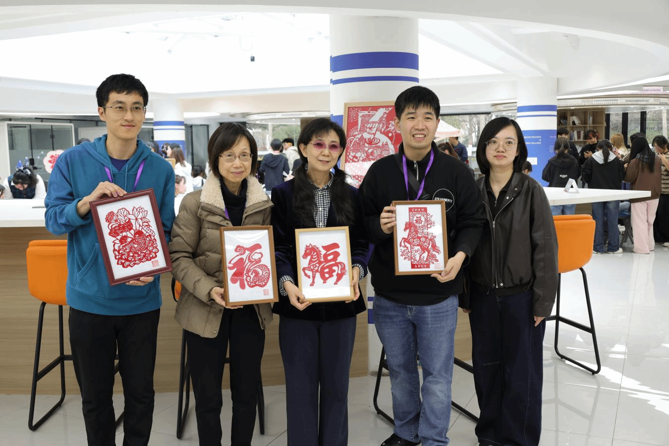 在剪纸体验中,剪纸社成员耐心讲解剪纸历史与技法,香港学子们手持剪刀与红纸认真裁剪,一幅幅寓意吉祥的剪纸作品承载着传统文化,凝聚了两地学子的创作热情。扭扭棒DIY制作环节,大家发挥创意,弯折组合出花朵、小动物等作品,在轻松欢快的氛围中感受手工乐趣,现场氛围十分热烈。手工冰箱贴制作中,大家们精心装饰,一件件特色作品成为此次交流活动的珍贵纪念。书法体验过程中,社团成员现场示范执笔运笔,香港学子们提笔挥毫,在一撇一捺间感受汉字之美与书法文化的博大精深。