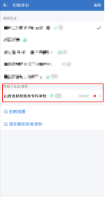注:如本人在企业微信中有多个企业,登录企业微信后请在企业微信中“我的”-“设置”-“切换身份”选择“山西省财政税务专科学校”进行短信验证即可,参考下图。
