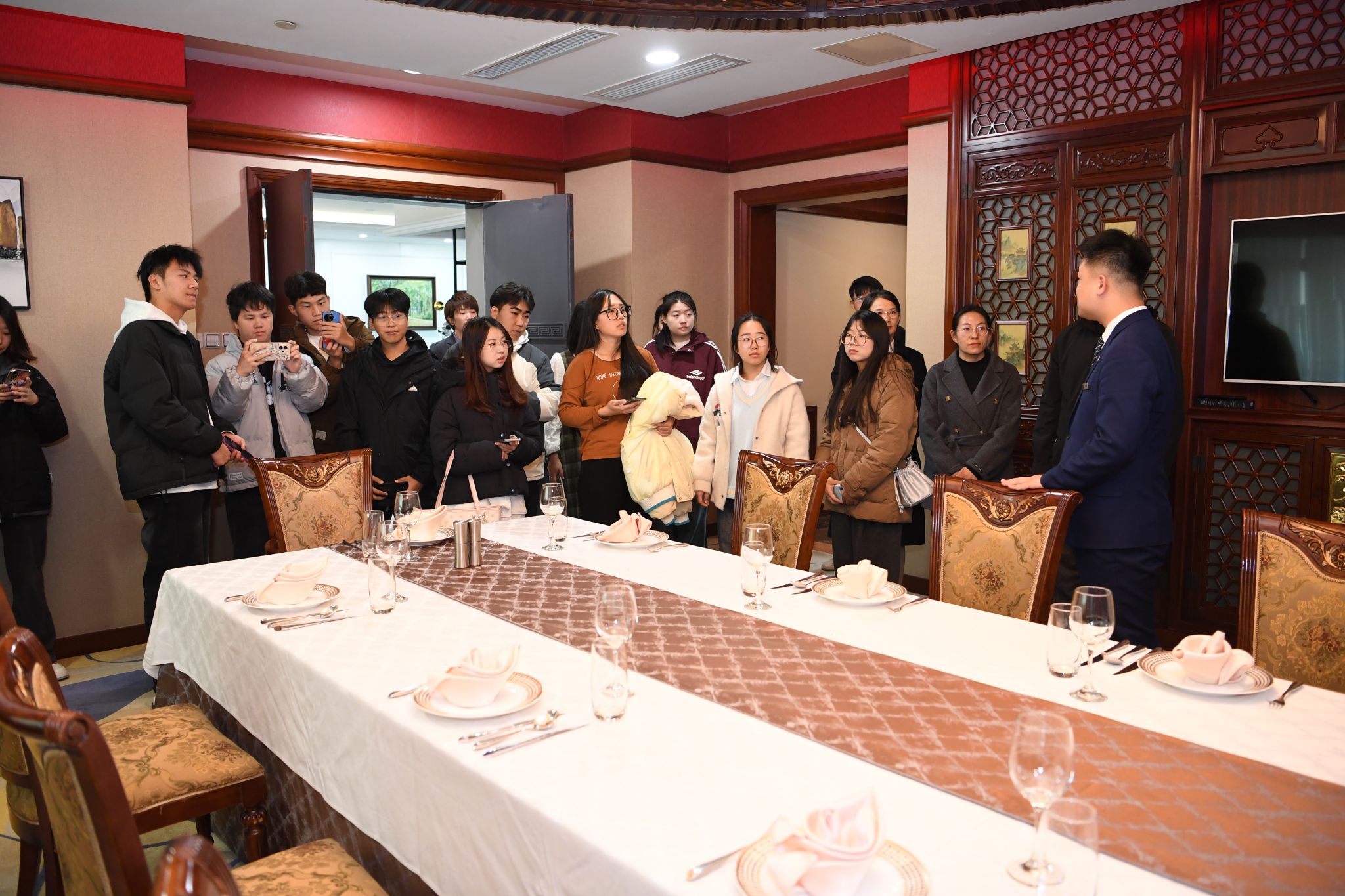 山西丽华大酒店作为山西省公务接待和商务接待标杆式五星级酒店,以其优质的、现代化的服务体系为学生们提供了绝佳的课程实操平台。郝金连博士表示,把课堂搬进我省优质的文旅合作企业,创新了文化旅游学院职业教育的教学模式,推动了理论与实践的深度融合,有效提升了学生的专业技能、职业素养和行业认知。同学们纷纷表示,这堂别开生面的实践课将成为他们学习生涯中的宝贵财富,激励他们在未来的道路上不断前行,为三晋文旅行业的发展贡献自己的力量。