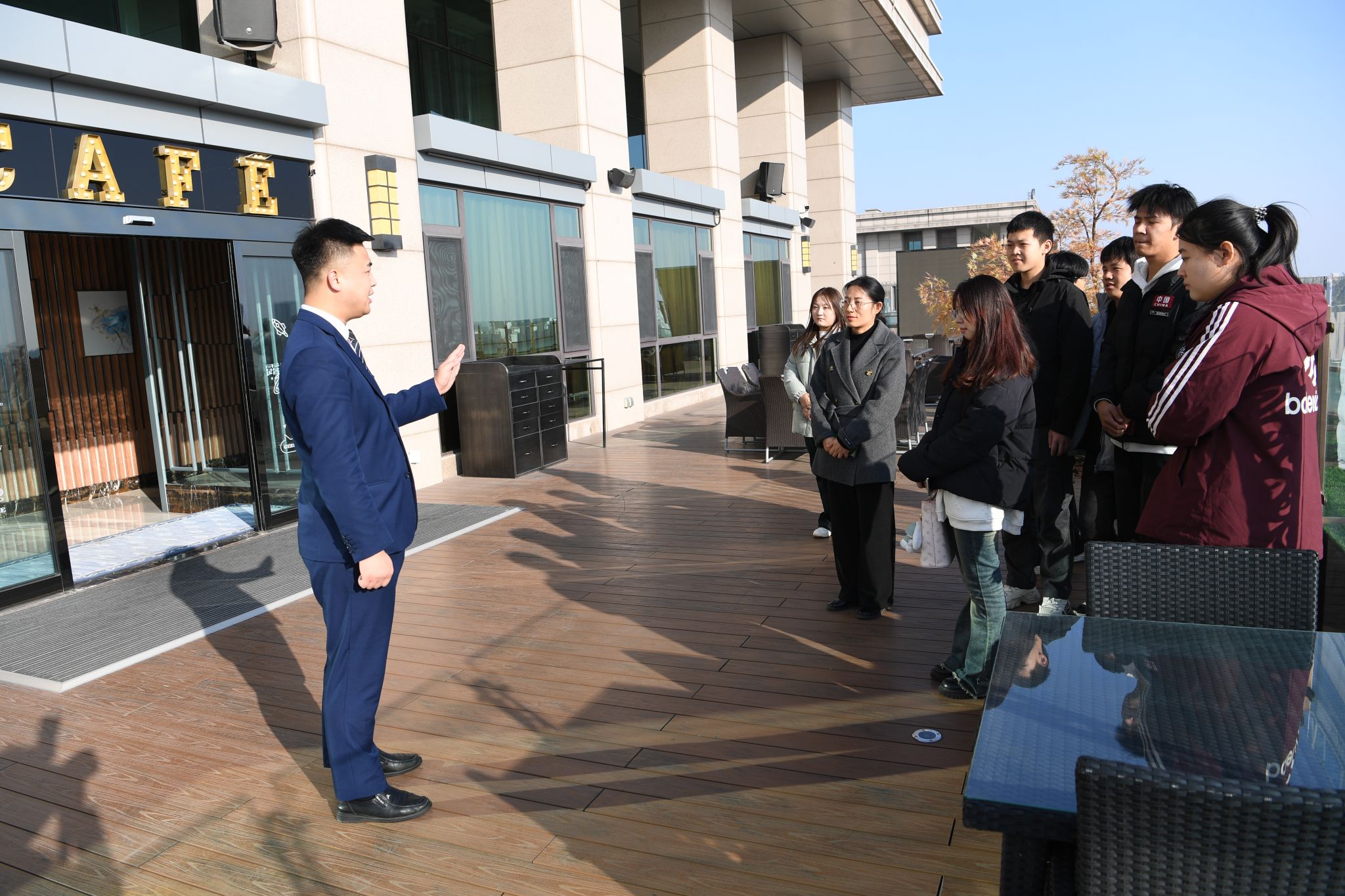学生们在实习生负责人贾丽老师指导下,亲身实践了前厅部接待宾客的全过程,从标准的问候语到高效的入住登记流程,全面体验了酒店前台工作的专业与细致;经过客房部楼层经理杨红叶老师耐心细致地讲授,学生们学习了客房清洁与整理的标准流程,以及如何通过细节服务提升宾客满意度;在露台西餐厅领班王印老师带领下,学生们了解了露天西餐厅新业态以及西餐服务的基本礼仪,通过模拟服务场景,锻炼了服务技能。