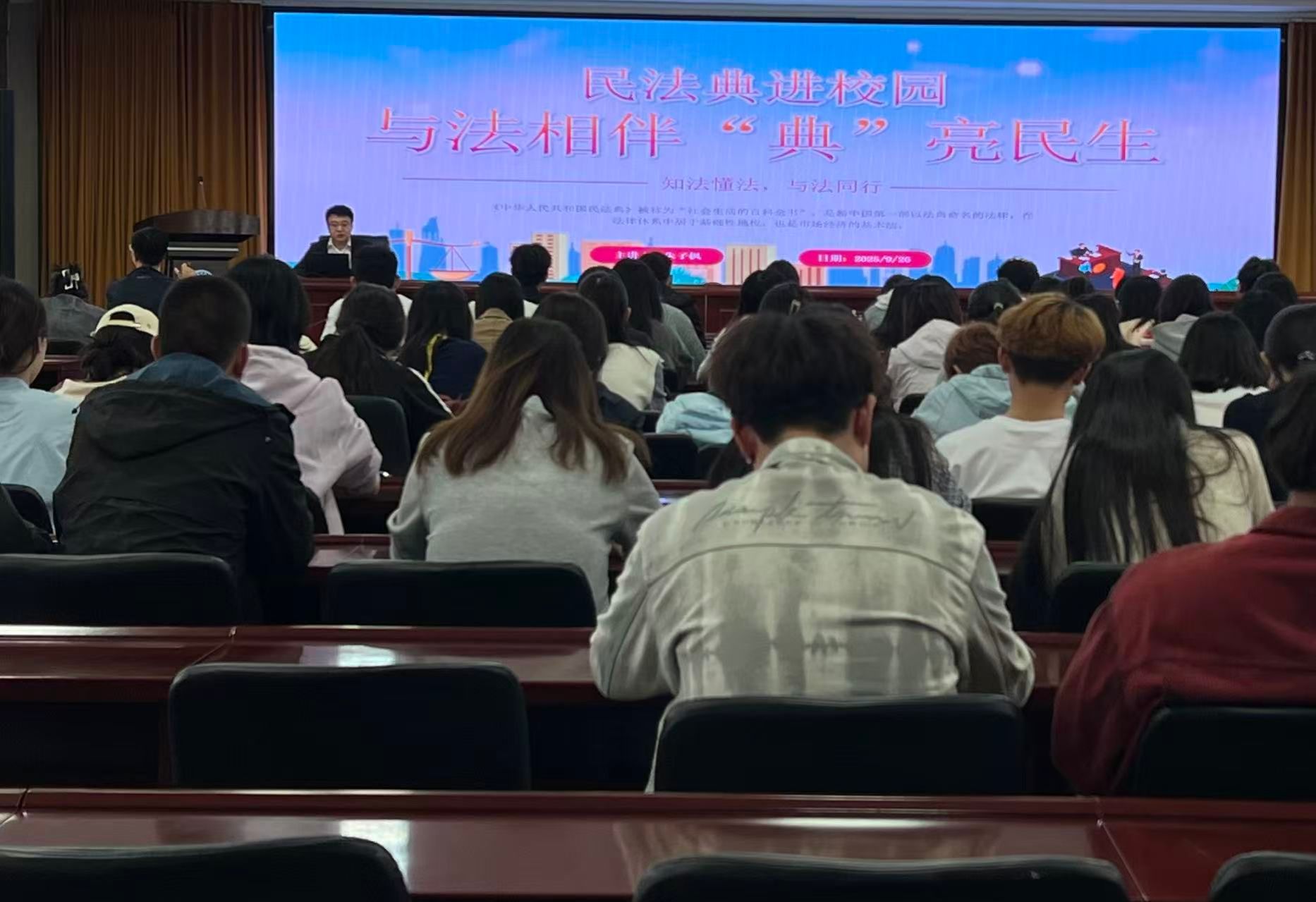 为深入贯彻落实《中华人民共和国法治宣传教育法》,营造浓厚的尊法学法守法用法氛围,9月26日下午,我校特邀请山西佳镜律师事务所高级合伙人朱子枫律师在1号教学楼7层会议室开展民法典进校园专题讲座。200余名学生到场聆听。