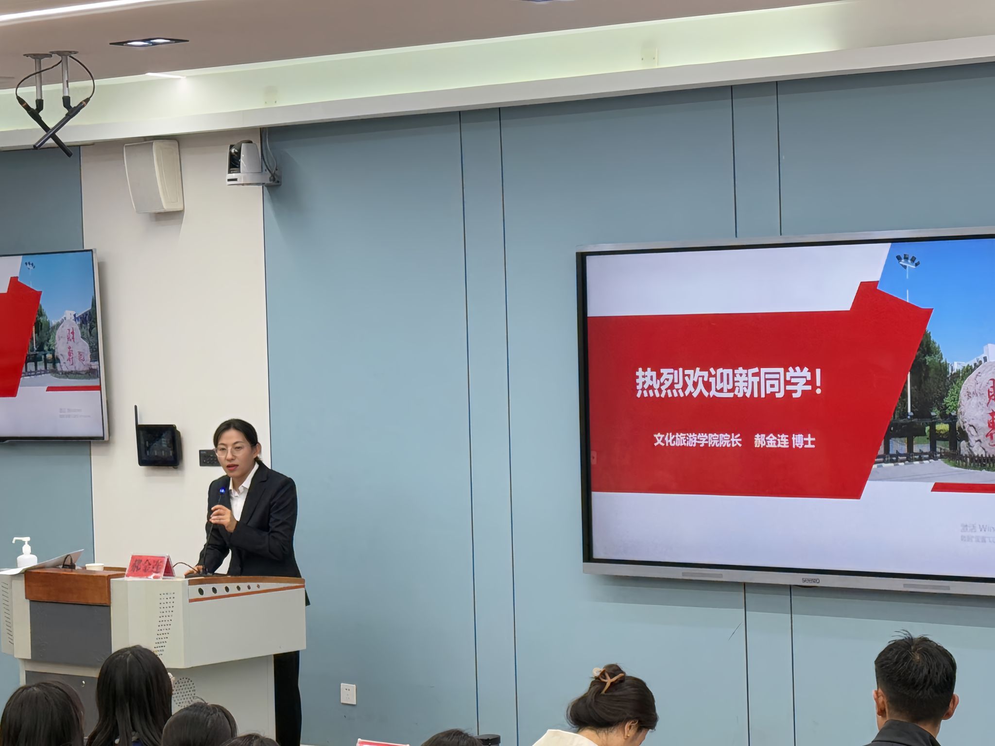 9月29日下午,文化旅游学院2025级新生入学教育在J307教室顺利举行。文化旅游学院党总支书记张卫、院长郝金连、党总支副书记李倩、学生科科长兼分团委书记马瑞,以及辅导员贾丰硕出席本次活动,与新生们共同开启大学生活崭新篇章。