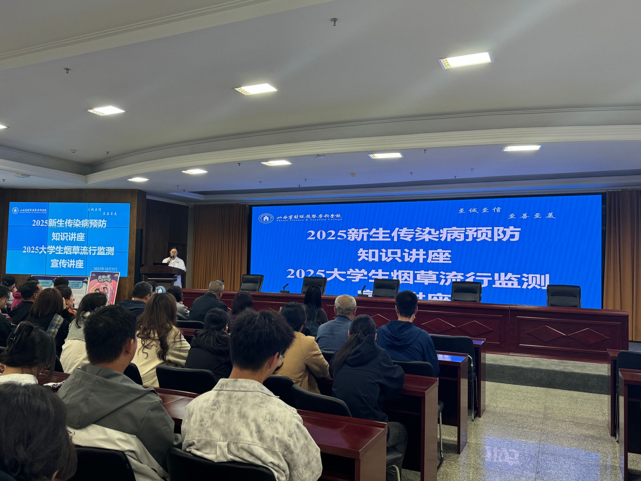 为筑牢校园健康防线,全面提升学生健康素养,10月9日,我校在一号教学楼7层会议室举办了2025级新生入学健康教育讲座。本次活动特邀省、市、区三级疾病预防控制中心的专家团队来校,为同学们带来一场内容丰富的“宣传教育课”。