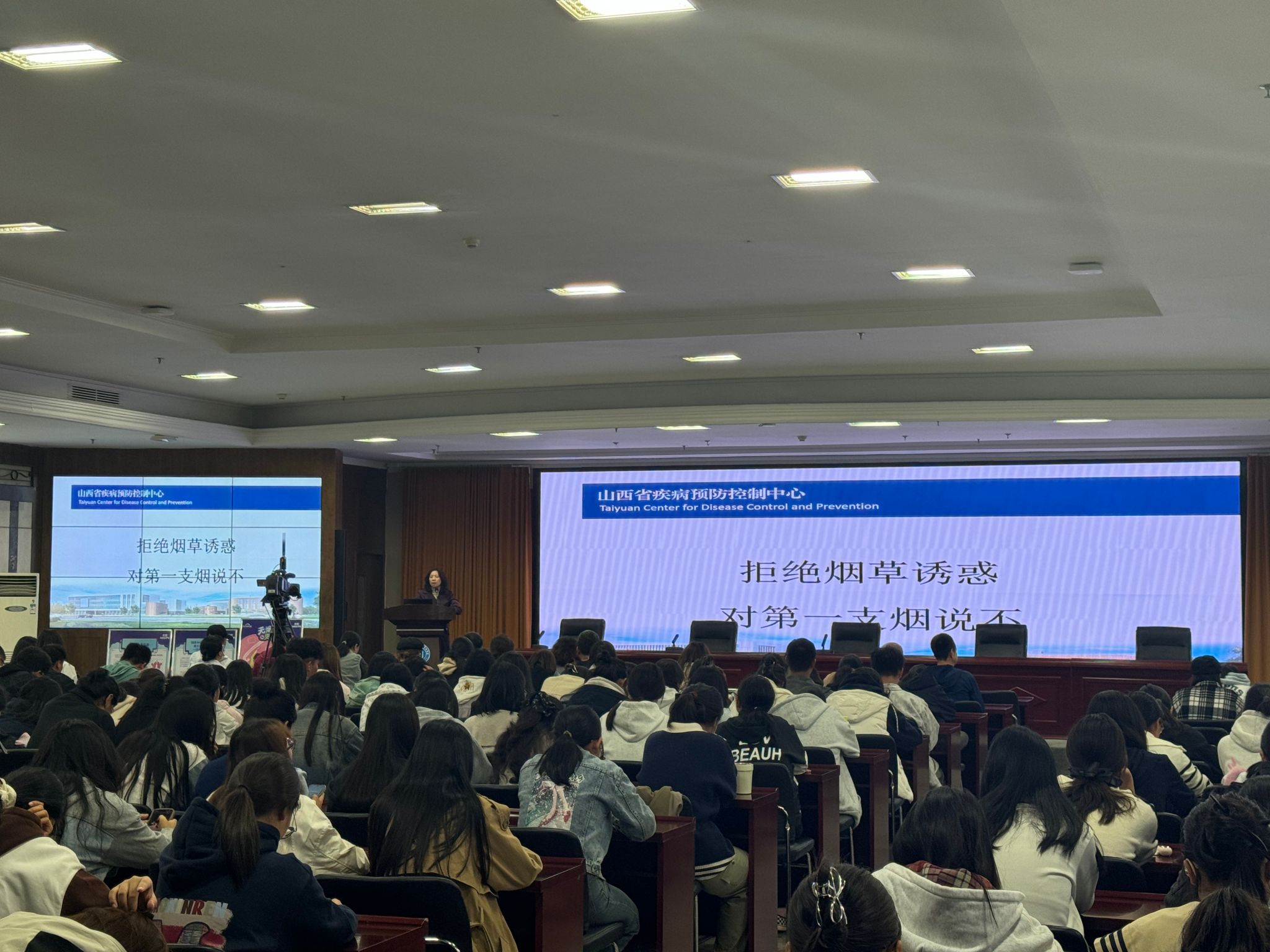 山西省疾控中心控烟项目负责人王鑫以“烟草流行及危害”为核心,融合季节性传染病、心理健康、生活方式等多维度内容,引导大学生树立正确的健康观,提升自我防护意识与能力,有勇气、有智慧地对第一支烟说“不”,共同守护无烟校园。校医卢琦为新生介绍了校内就诊流程与大学生医保政策,并重点讲解了肺结核、艾滋病等传染病的防治,以及基本的急救互救技能。