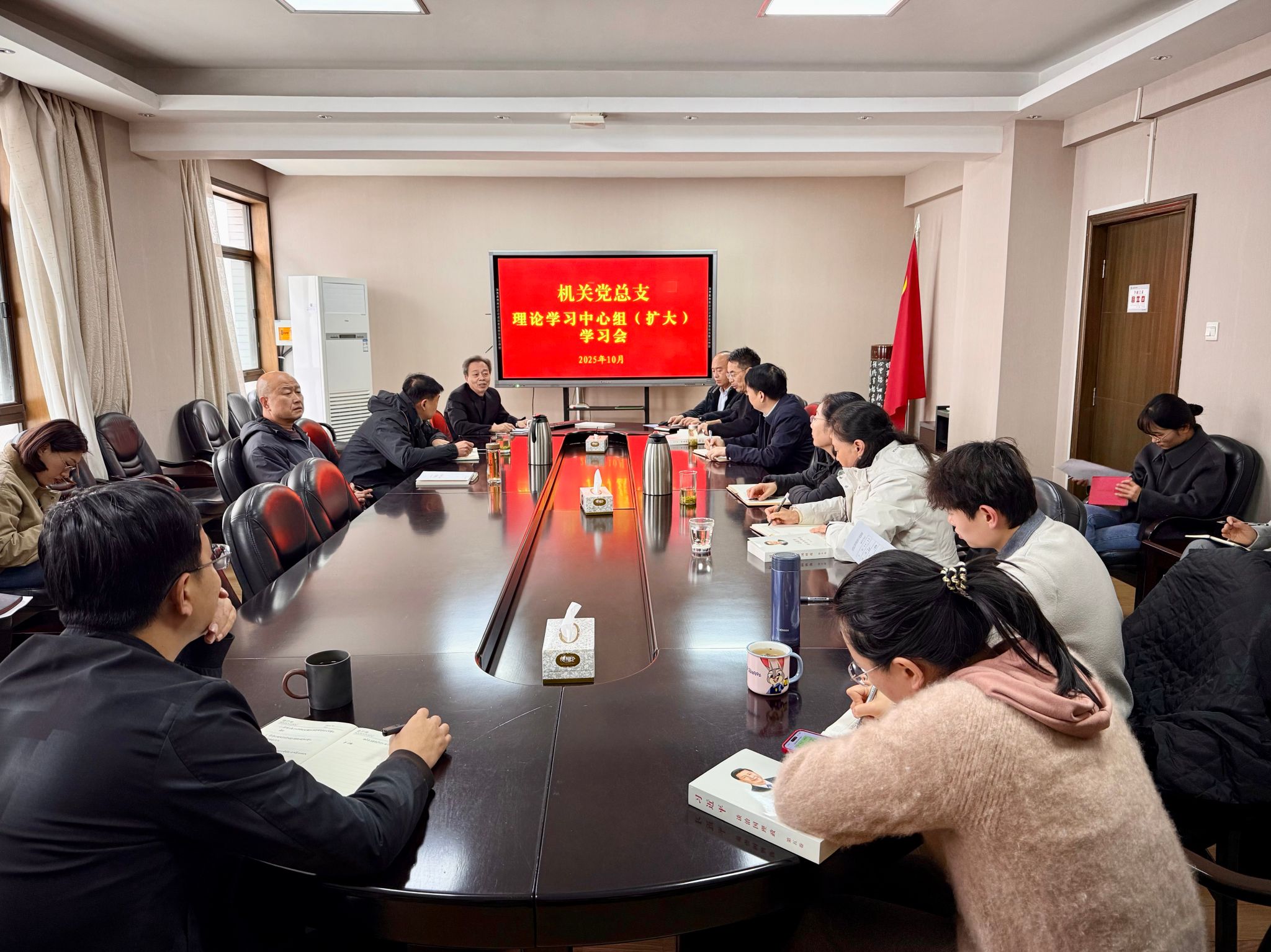 10月21日下午,机关党总支理论学习中心组在办公楼二层会议室召开(扩大)学习会。党总支中心组成员和青年理论学习小组成员参加会议,会议由党总支书记张卿主持。党委副书记杨晓明列席会议。