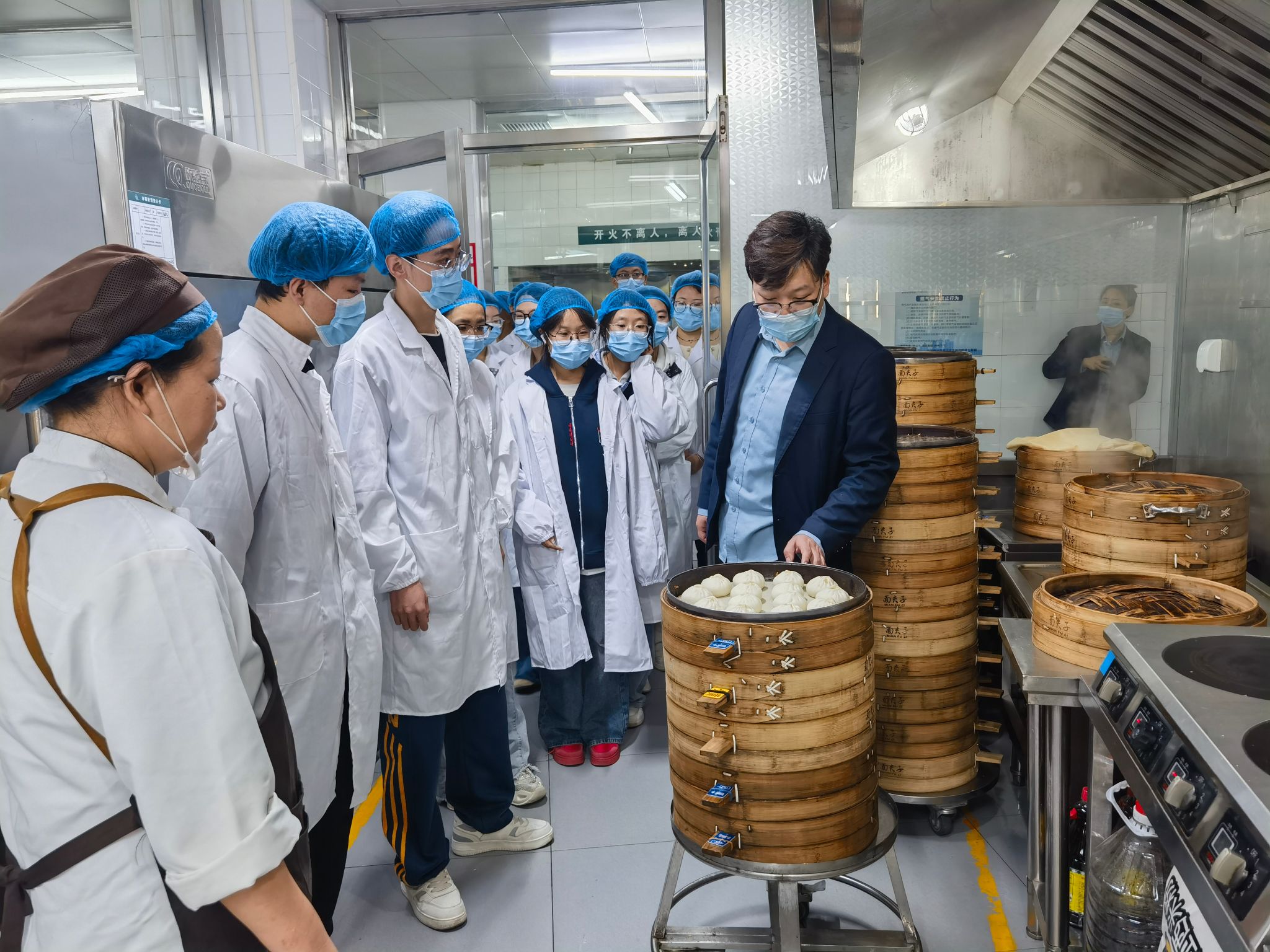 10月29日,召开学生膳食座谈会。学生代表走进后厨,实地查看环境卫生、食品加工及餐具消毒情况,积极建言献策。食堂负责人认真听取并回应学生意见,承诺持续优化服务。