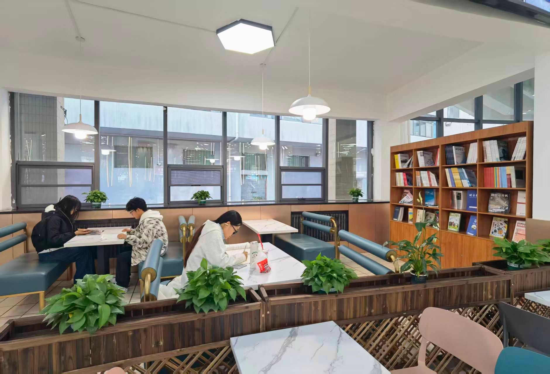 踏入餐厅,"阅读空间"映入眼帘。书架上,各类红色经典、党史佳作、专业书籍整齐排列。同学们在餐前饭后驻足阅读,于潜移默化中接受红色文化的熏陶,让红色基因在校园中代代相传。