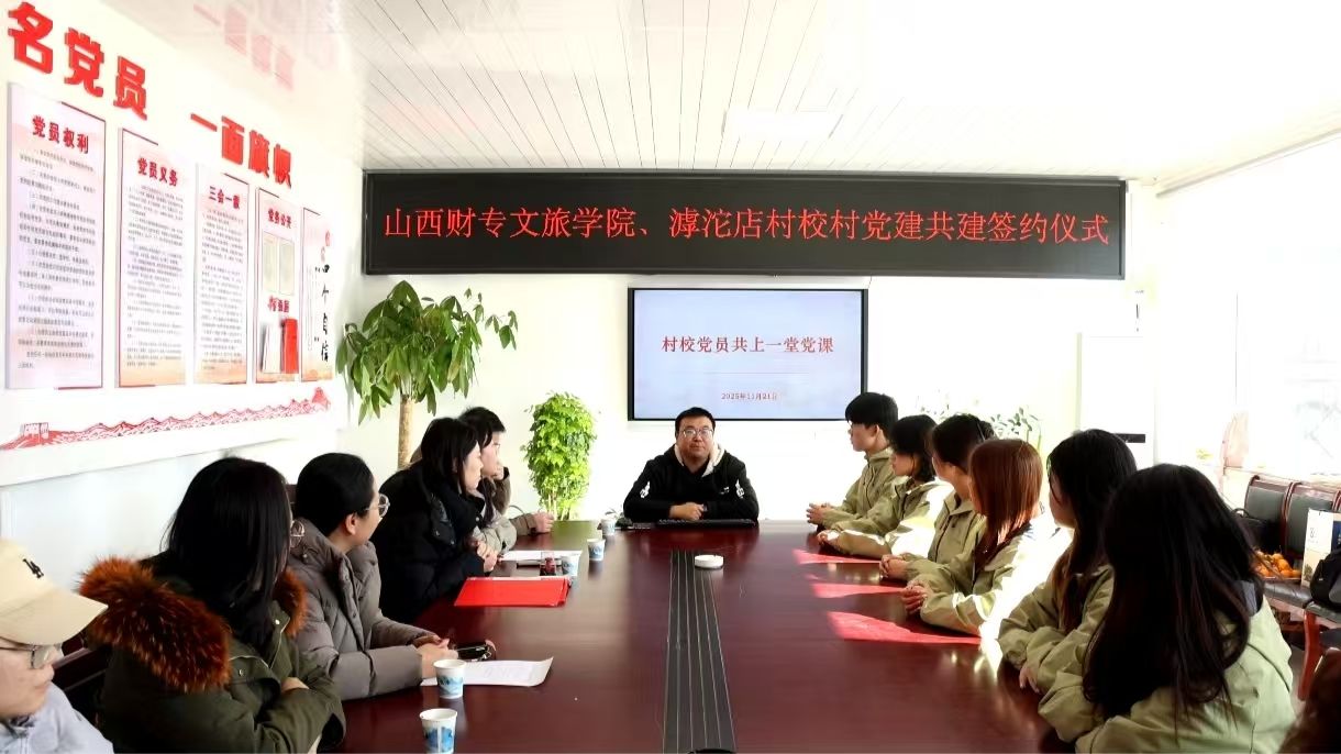 活动当天,支部师生首先在滹沱店村党群服务中心与村党组织开展了党建共建协议签订仪式,并围绕乡村振兴主题进行了深入座谈。我校驻村第一书记赵宝龄受邀讲授“乡村振兴”专题党课,村校党员干部和师生同上一堂主题党课,进一步增强了师生党员对国情乡情的认识,筑牢理想信念根基。