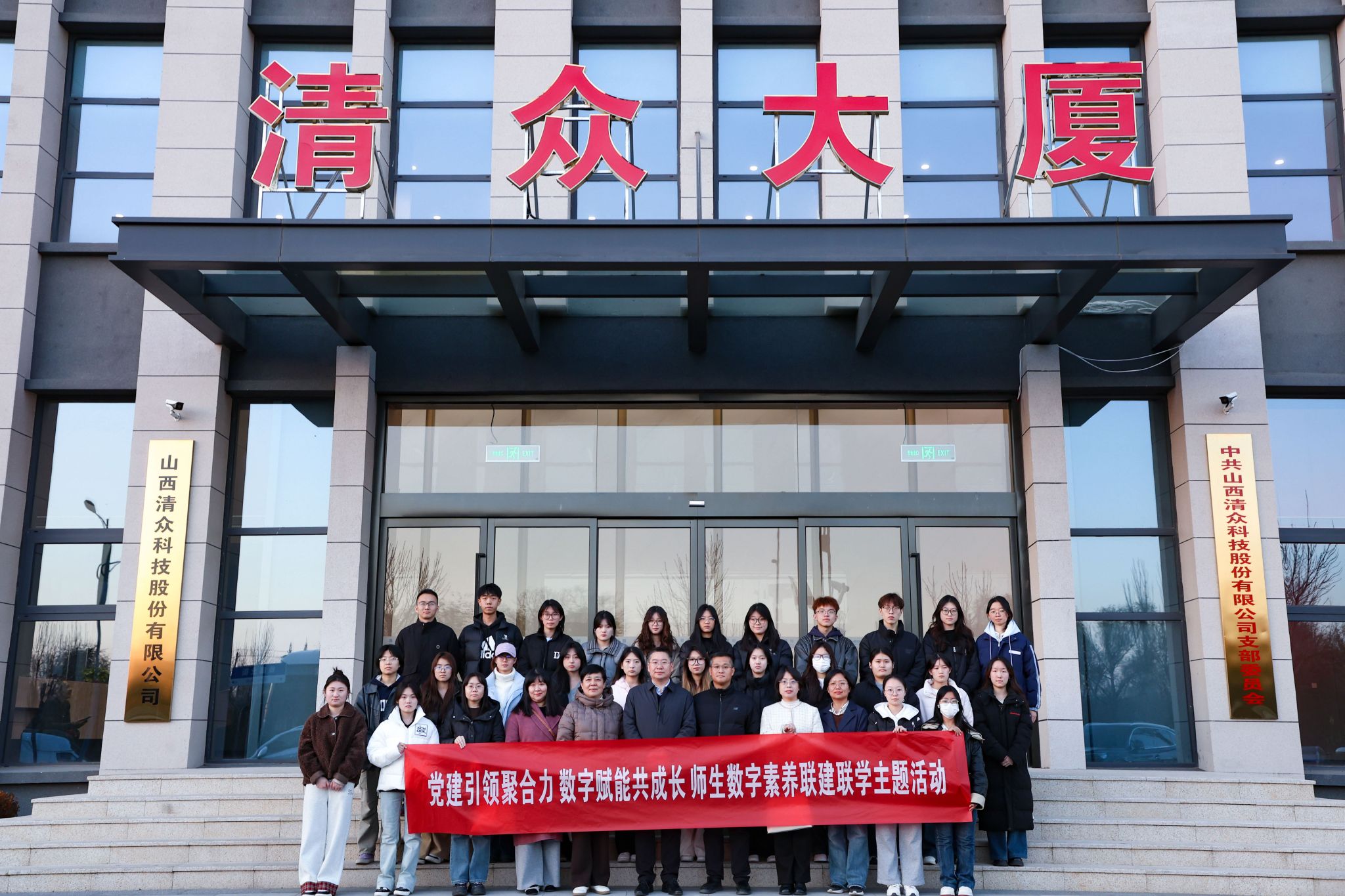 为深入学习贯彻习近平总书记关于党的建设的重要思想,全面落实党的二十大关于新时代党的建设的部署要求,我校坚持以高质量党建为引领,推动党建与教育教学、产教融合等中心工作深度融合、同频共振,赋能学校事业高质量发展。11 月 21 日,信息科技学院党总支联合数字商务学院党总支,组织师生代表赴山西清众科技股份有限公司,开展 “党建引领聚合力,数字赋能共成长,师生数字素养联建联学” 主题活动,并成功举行 “教师企业实践流动工作站” 挂牌仪式。