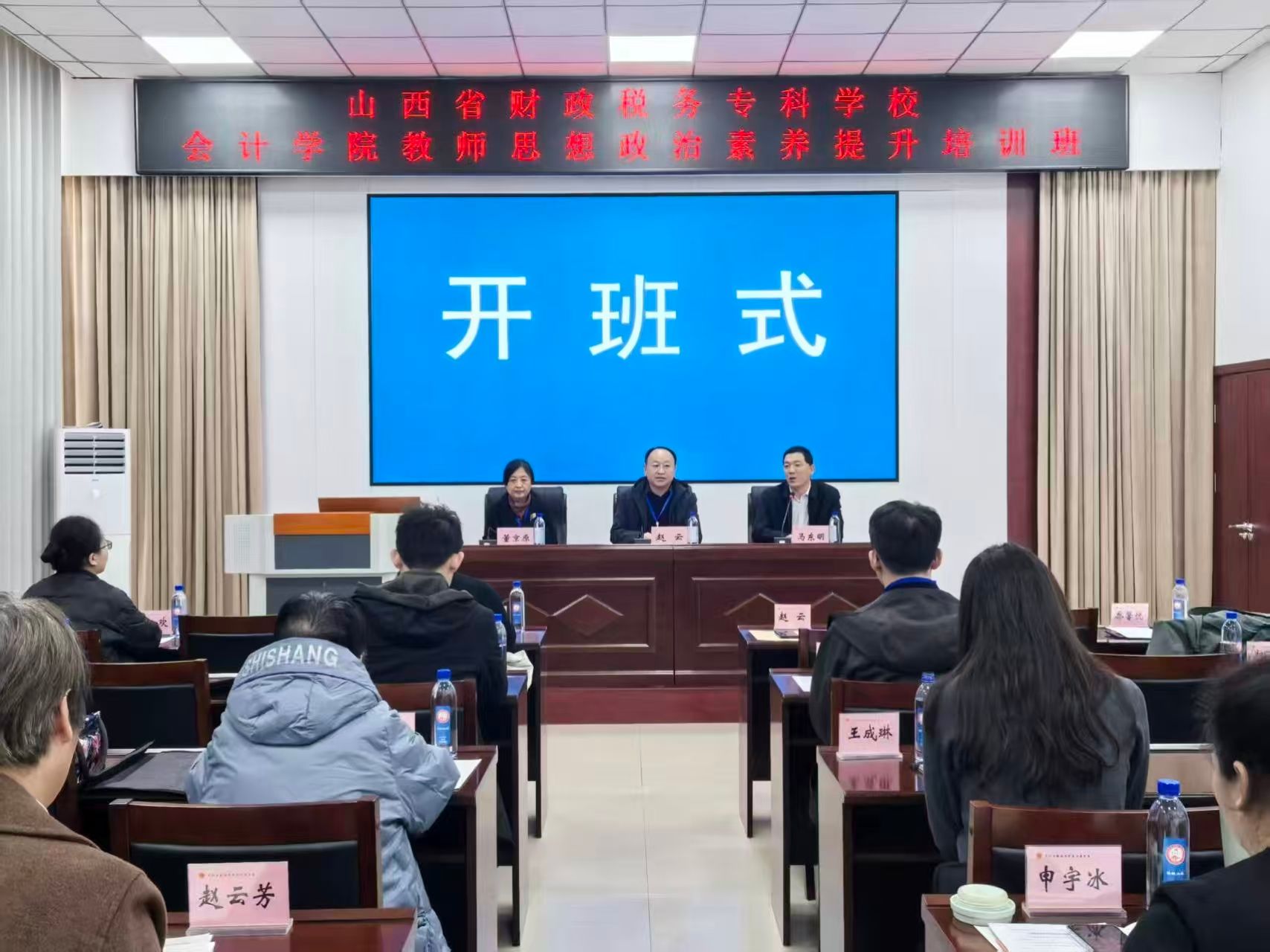 开班仪式上,西柏坡工委党校副校长马东明致欢迎辞。会计学院党总支书记赵云强调了此次培训的重要意义,希望全体参训教师珍惜学习机会,深刻感悟西柏坡精神的内涵与时代价值,把学习西柏坡精神与学习贯彻党的创新理论结合起来,与落实“立德树人”的根本任务结合起来,与推进新一轮“双高”建设结合起来,沉下心来“学”,带着问题“思”,遵守纪律“行”,将学习成果转化为推动教学科研、潜心教书育人的强大动力。
