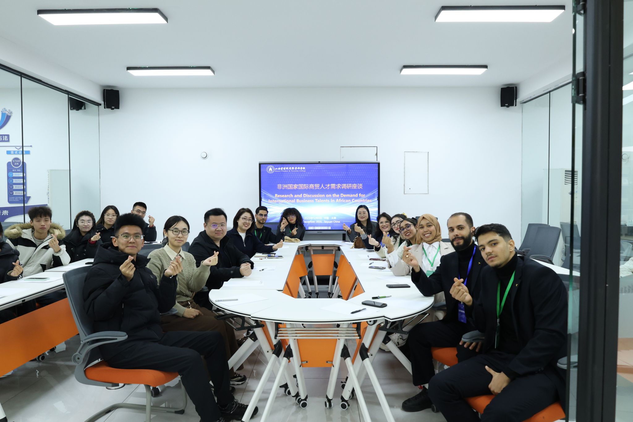 参观环节结束后,中外师生前往大学生创新创业中心,开展了“非洲国家国际商贸人才需求调研”座谈会。会议期间,双方聚焦跨境电商运营实操、国际贸易规则应用、非洲市场商品购买渠道拓展等核心议题展开交流,分享了各自在赛事备战、市场实践中的经验与典型案例。我校学生围绕非洲跨境电商支付安全保障、物流时效优化、区域消费偏好差异等实际问题主动提问,现场问答互动密集高效。