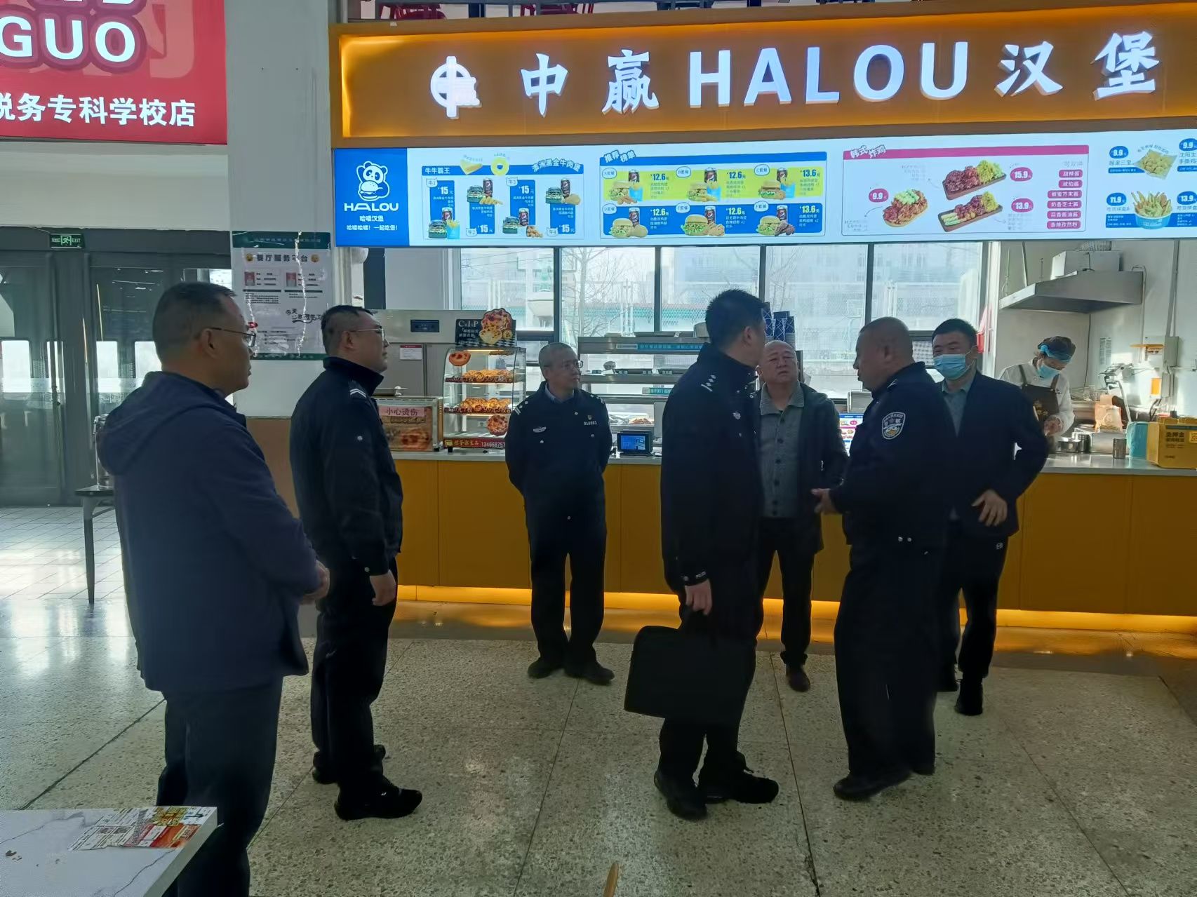 王晋源副大队长一行深入校园消防控制室、食堂、门卫室等重点区域实地查看消防设施配备、安保应急处突装具、应急疏散通道畅通情况。在消防控制室,检查组详细询问值班人员应急处置流程,仔细核查消防设施日常巡检记录,要求工作人员务必熟练掌握设备操作技能;逐一查看监控设备覆盖范围、运行状态及监控数据存储管理,强调要实现校园重点区域监控无死角,为校园安全提供有力技术支撑。同时,查看了安保人员的年龄结构和证书,确保在关键时刻“拉得出、用得上”。随后在保安值班室,王晋源与保安人员亲切交流,了解值班值守、人员进出登记及安保器械配备情况,叮嘱大家要提高警惕,严格落实安保制度。