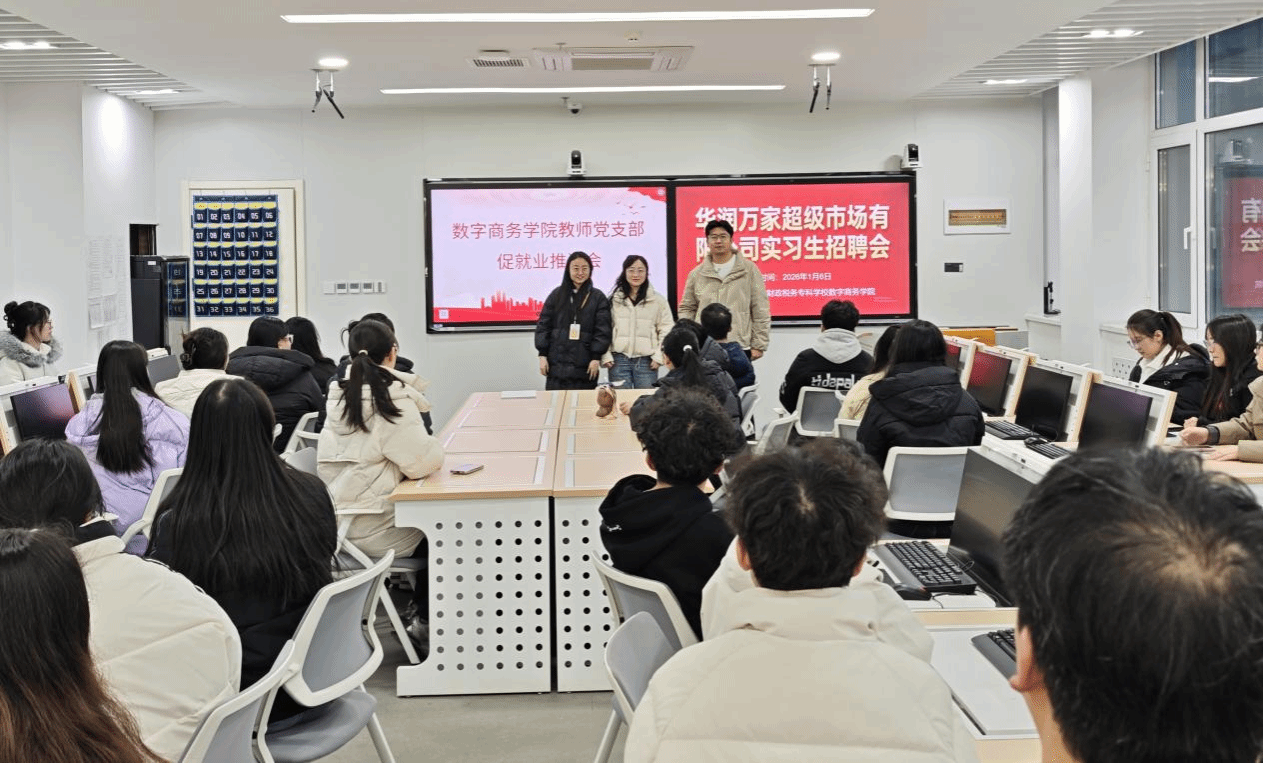 教学分享环节结束后,教师党支部同步召开就业促进会,会议邀请华润万家超级市场有限公司人力资源负责人开展了实习招聘宣讲。负责人围绕企业人才需求结构、实习生培养体系等内容进行介绍,现场发布了实习岗位,并与多个学生达成实习意向。就业促进会为学生拓展实习与就业渠道搭建了对接平台,推动教学改革与就业工作形成双向联动。
