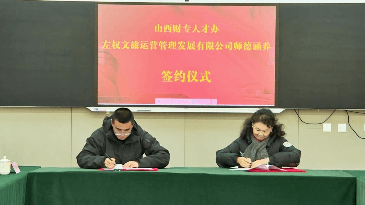 为深化校地合作,推动党建引领与文旅产业、人才培养有机融合,1月13日,我校与左权生态文旅示范区合作签约仪式在桐峪1941培训基地举行。仪式围绕师德涵养基地建设与党建联建两项内容展开,标志着双方在资源共享、优势互补、协同发展上迈出关键一步,是深化校地合作、推动产教融合的重要实践。