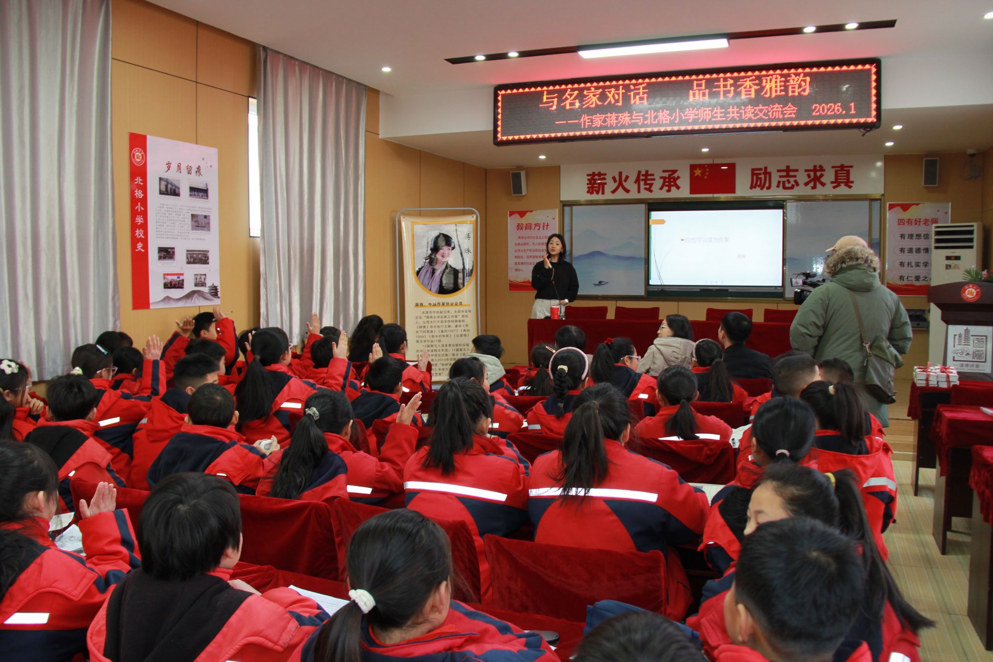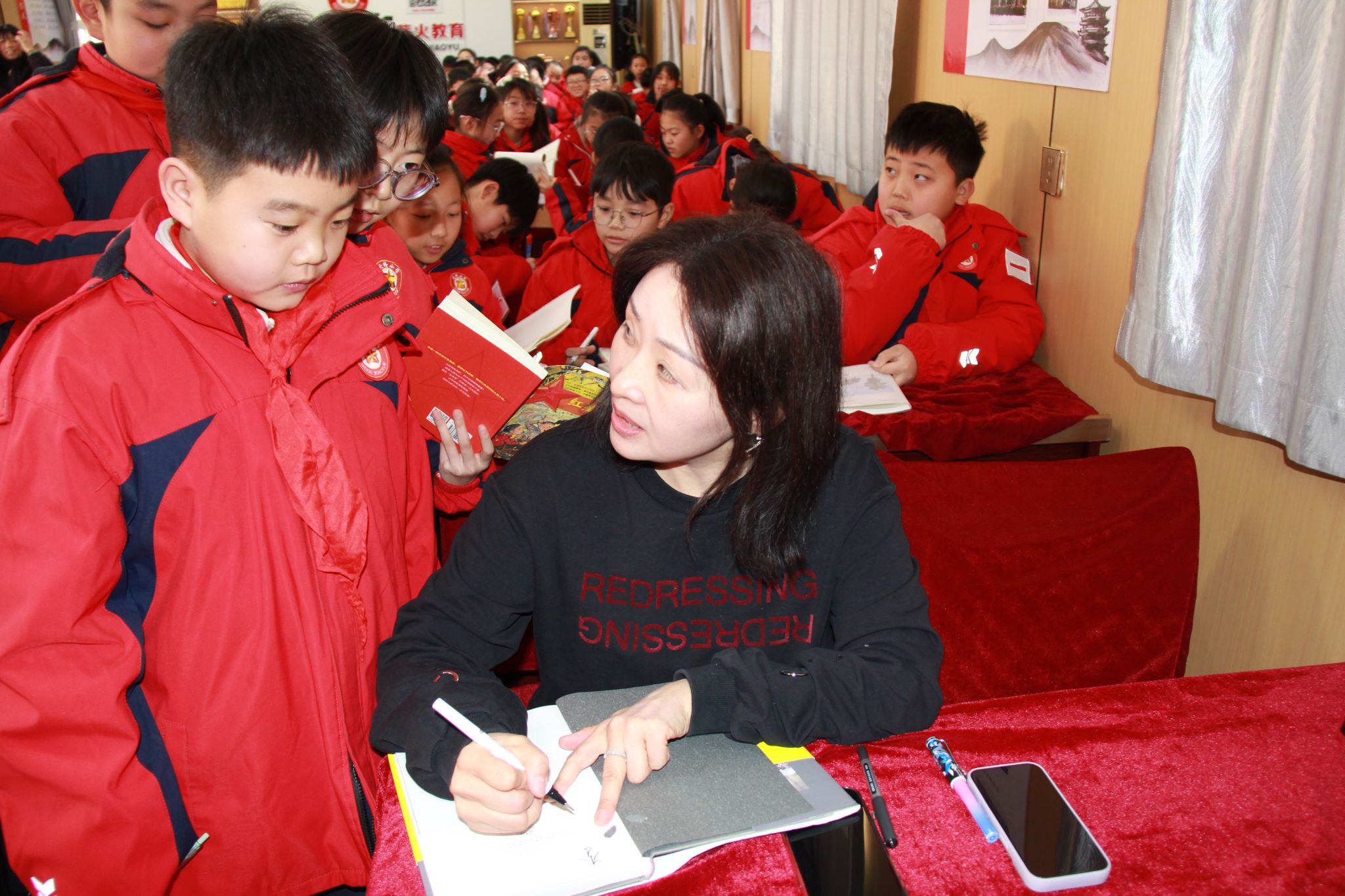 蒋殊老师以趣味提问开篇,迅速拉近与孩子们的距离,结合自身数十年创作经历娓娓道来,传递条例所倡导的“爱读书、读好书、善读书”理念。她向孩子们传递了“多读多记”的写作真谛:既要沉下心研读纸上的有字之书,积累知识底蕴;更要用心观察生活中的“无字之书”,捕捉真实感悟,唯有兼具细致观察、用心记录与深度思考,文字才能兼具厚度与温度。在互动热烈的“文心对谈”环节,孩子们踊跃举手提问,蒋殊老师逐一耐心回应,分享了创作背后的动人故事——笔下蜀葵的灵感源于儿时折损植株后的愧疚与惦念,数十年坚守写作则源于对文字的纯粹热爱与传递美好的初心,让在场师生在沉浸式交流中深化阅读认知,契合条例中“开展适应少年儿童阅读特点的指导活动”的要求。分享结束后,蒋殊老师与同学们开展温馨签名互动,让孩子们近距离感受文学名家的风采与气度,进一步激发阅读热情。
