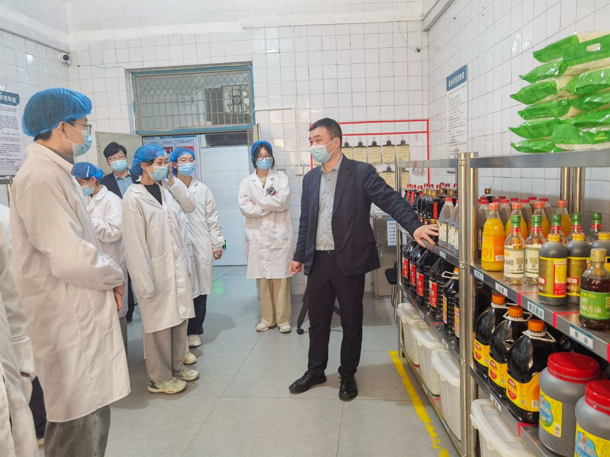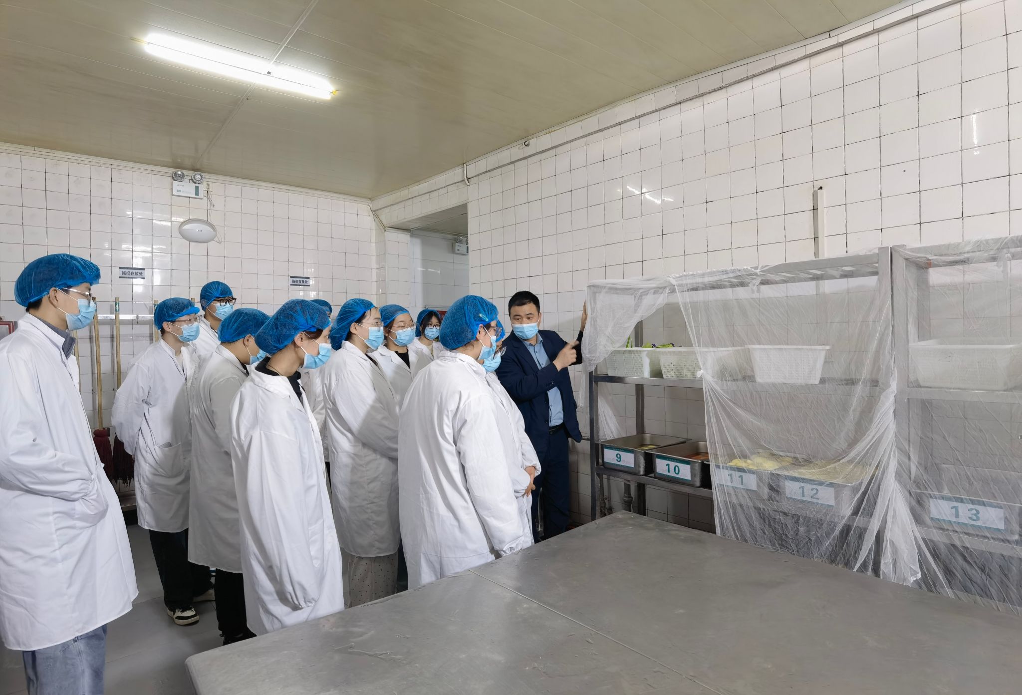 在食堂负责人的陪同下,同学们参观了操作间、消毒间、食材库房等重点区域。后厨整洁有序,食材摆放规范,大家认真查看原料品质与保质期,直观感受食堂的操作流程。