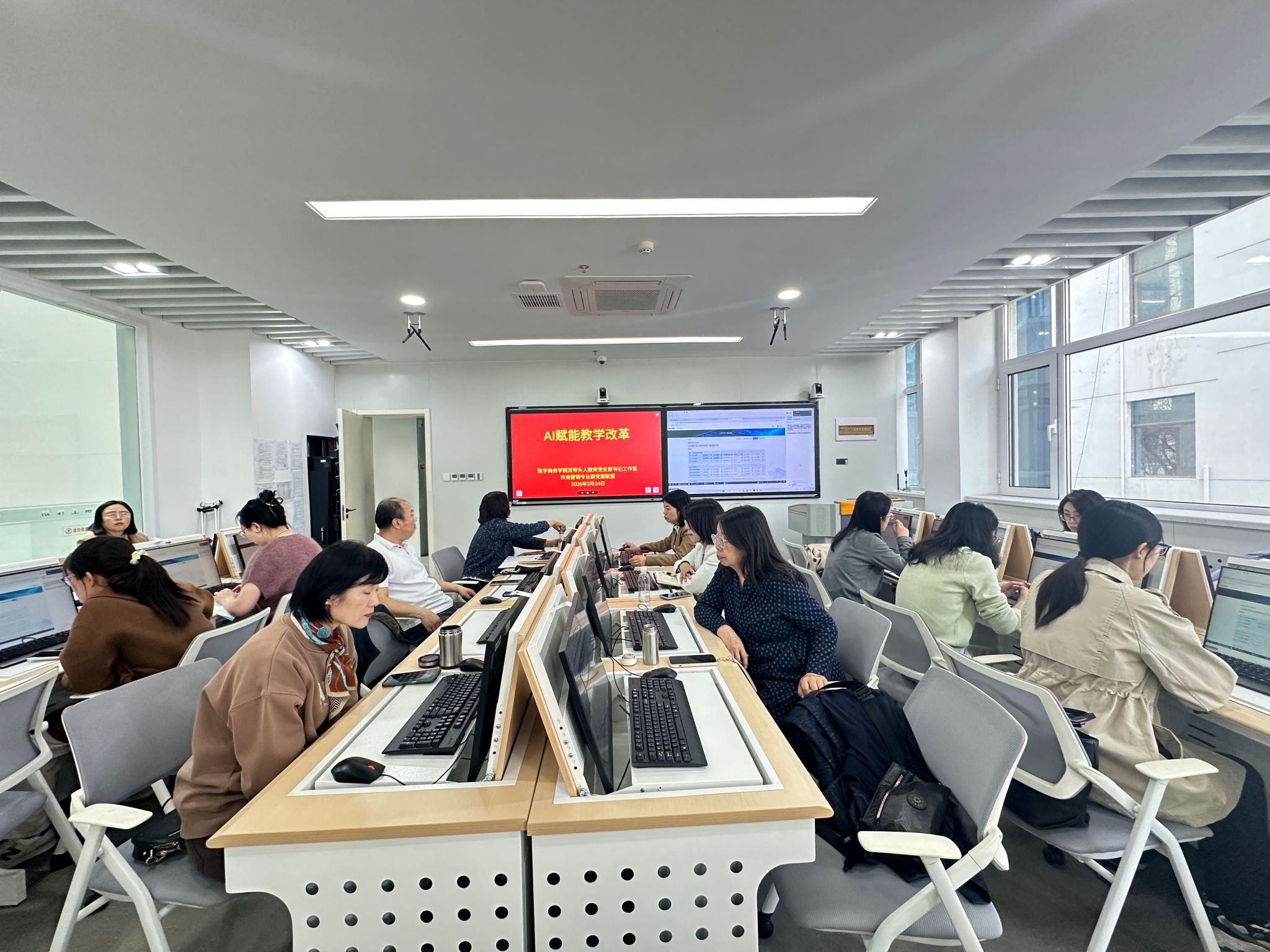 3月24日,数字商务学院以“AI赋能教学改革”为主题,同步开展学生AI漫剧生产性实践项目与教师数字化教学能力提升培训,形成师生同研共进、双线并行的良好格局。本次活动由数字商务学院“双带头人”教师党支部书记工作室与市场营销专业群党建联盟共同组织推进,全方位探索数字新技术与教学、实践的深度融合,积极拥抱教育数字化改革浪潮。