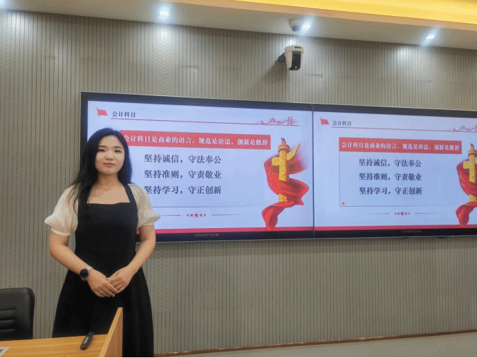 李星璇老师以《解码会计科目——商业世界的语言基石》为主题,从会计基础课程中确定会计科目的学习任务切入,系统分析了从会计对象到会计要素再到会计科目的必要性,进而引申出会计科目的概念,并通过举例引出会计科目设置的规范性与灵活性。李老师形象地将会计科目比作商业语言,规范是语法,创新是修辞,强调会计人员应遵循国家会计制度的统一规定,同时也要运用创新思维、发挥创新精神。本次分享内容引导学生感受会计所需要的管理意识,并将遵纪守法、合规意识以及创新意识融入其中,让学生更好地理解如何成为一名“三坚三守”的优秀会计人才。