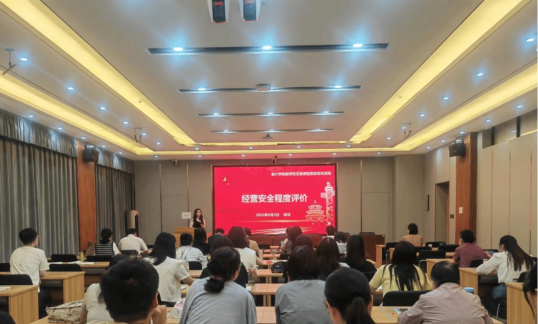 2025年6月3日下午,我院教师党支部开展课程思政示范课主题党日活动。本次活动由徐洁老师主讲,主题为“经营安全程度评价”,我院教师党支部全体党员参与。