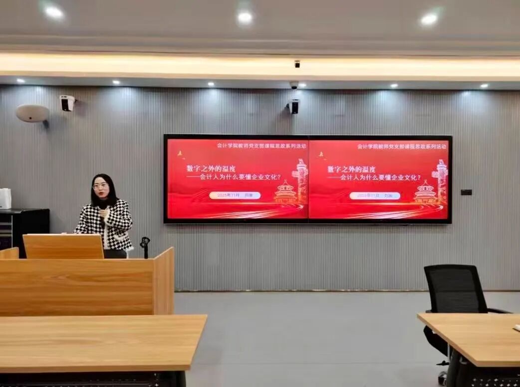 2025年11月11日下午,我院教师党支部开展课程思政示范课主题党日活动。本次活动由党员教师刘唤老师主讲,主题为“数字之外的温度:会计人为什么要懂企业文化”,我院教师党支部全体党员参与。