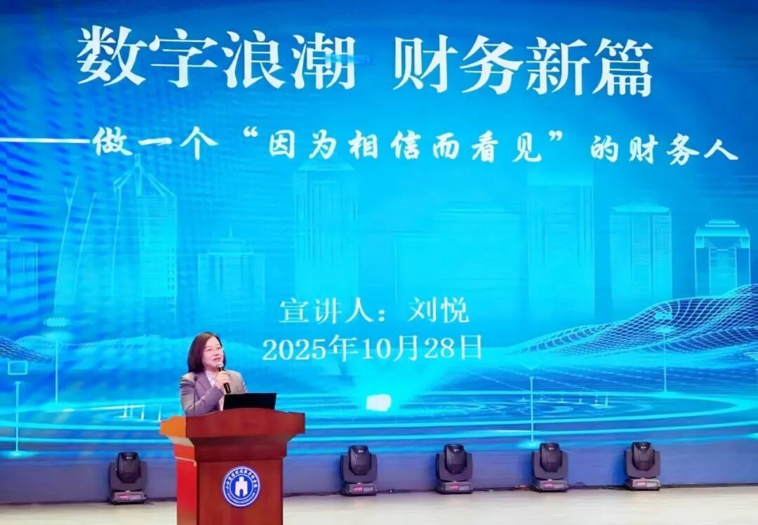 山西交通控股集团有限公司共享服务分公司总经理刘悦以“数字浪潮 财务新篇---做‘因为相信而看见’的财务人”为题,回顾了从手工账时代起步,亲历会计电算化到数字化变革的职场生涯,分享了职业成长经验,希望同学们勇于突破自我,修炼强大内心,厚植专业沉得下,技术变革跟得上,商业视野看得远,成为既精通财务专业,又懂业务、善管理的复合型人才。