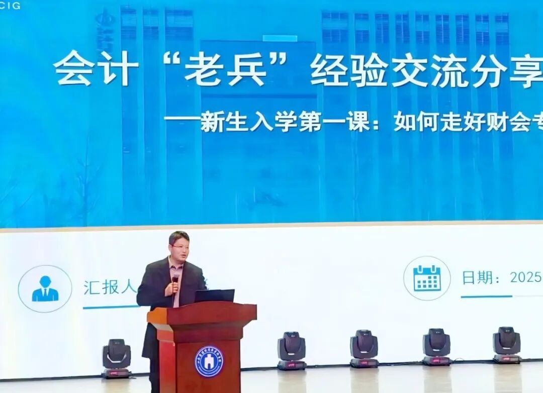 会计学院党总支书记赵云在致辞中对出席活动的各位领导和专家表示热烈欢迎和诚挚感谢。他指出,在学院2025级新同学们开启大学生涯之际,此次汇聚省内会计领域顶尖专家的公益活动意义重大,这既是一堂丰富的专业启蒙课,也是一次精准的职业生涯导航,助力新生系好“职业生涯的第一粒扣子”,对学院培育未来财会英才具有重要的推动作用。