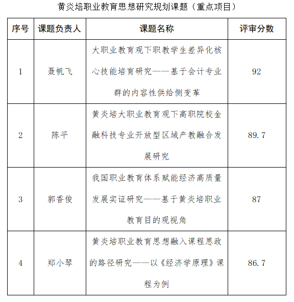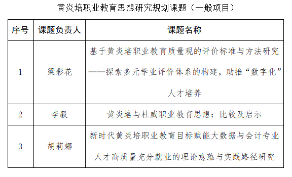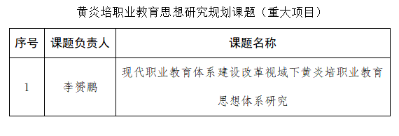 为进一步加强黄炎培职业教育思想的研究,指导、服务和促进职业教育改革与发展,根据中华职业教育社《关于组织开展第二届黄炎培职业教育思想研究规划课题申报工作的通知》要求,我校组织各教学单位对该课题进行申报。