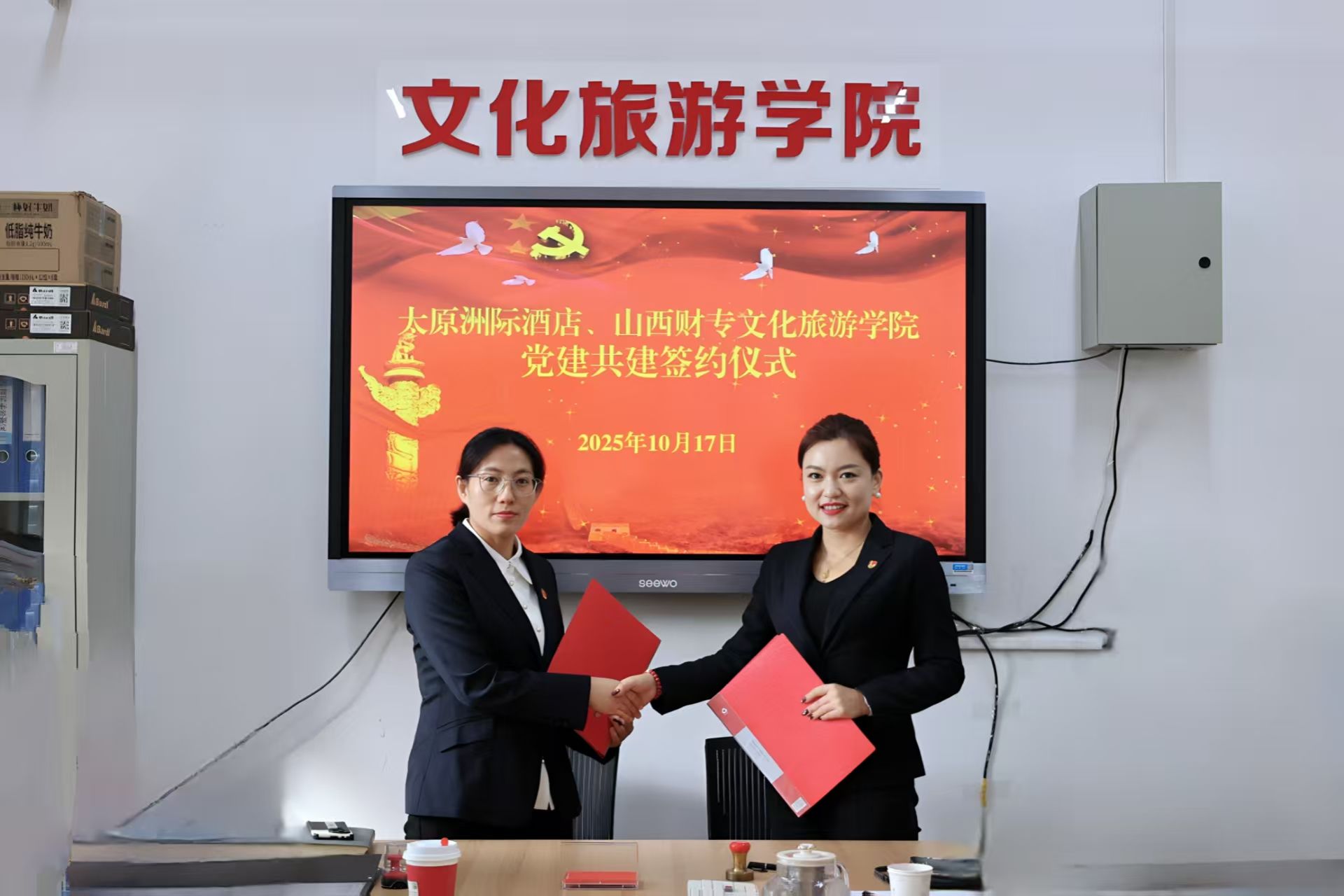 金秋龙城,硕果盈枝。为进一步深化校企合作,推动党建与业务融合发展,10月17日下午,中共太原洲际酒店党支部与山西财专文旅学院教师党支部党建共建协议签字仪式在办公楼320会议室举行。太原洲际酒店党支部张文静书记与文化旅游学院教师党支部郝金连书记分别签署相关文件,文化旅游学院全体教师和部分学生积极分子参加此次会议。校企党建共建是新时代党建工作的必然要求,此次共建签约是校企双方深入贯彻落实党的二十大关于深化产教融合、...