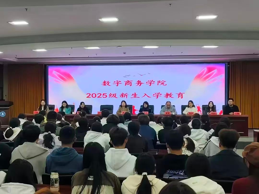 为助力新生快速适应大学生活、明确学业成长路径,10月9日,数字商务学院开展了2025级新生入学教育。学院党总支负责人王方、副院长李越等相关领导及新生辅导员参加活动,从思想引领、专业认知、成长规划等多维度为新生搭建成长“导航图”,助力学生平稳迈出大学第一步。