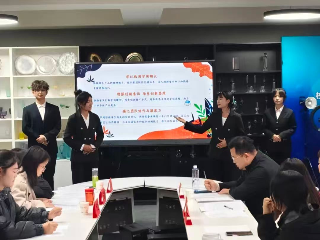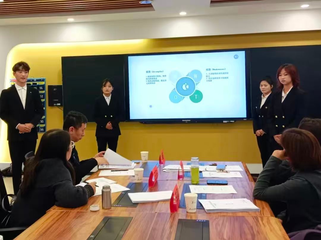 在大赛最后的汇报环节中,同学们从容自信,以清晰的逻辑脉络串联起营销方案的核心思路、落地执行与实战成效。从目标客群定位、产品卖点挖掘,到促销活动设计、销售数据复盘,每一处阐述都条理分明;语言表达精炼有力且富有感染力,既展现了对专业知识的灵活运用,也彰显了良好的沟通表达能力与团队协作素养。