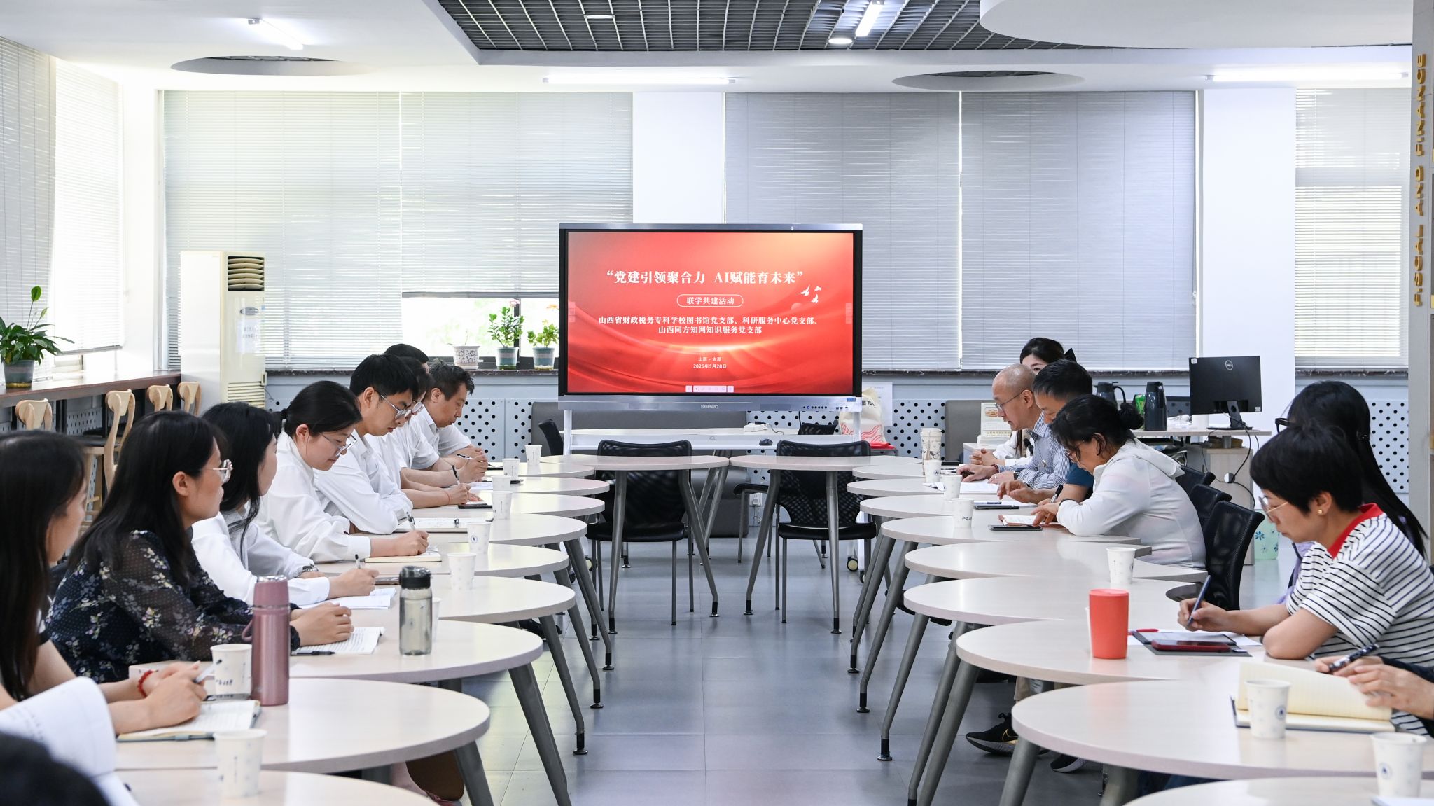 为切实破解我校师生在利用数字资源与AI辅助工具开展教学、科研及管理工作时面临的难点与堵点,5月28日,图书馆党支部、科研服务中心党支部携手山西同方知网知识服务党支部,共同开展了“党建引领聚合力 AI赋能育未来”主题联学共建活动。此次活动以党建为引领,以师生需求为导向,以先进技术为支撑,通过“调研问需、资源下沉、技术赋能”三大有力举措,为学校教学科研管理工作注入全新动能,致力于开创教学科研管理新范式,助力产出高水平科研教育成果。