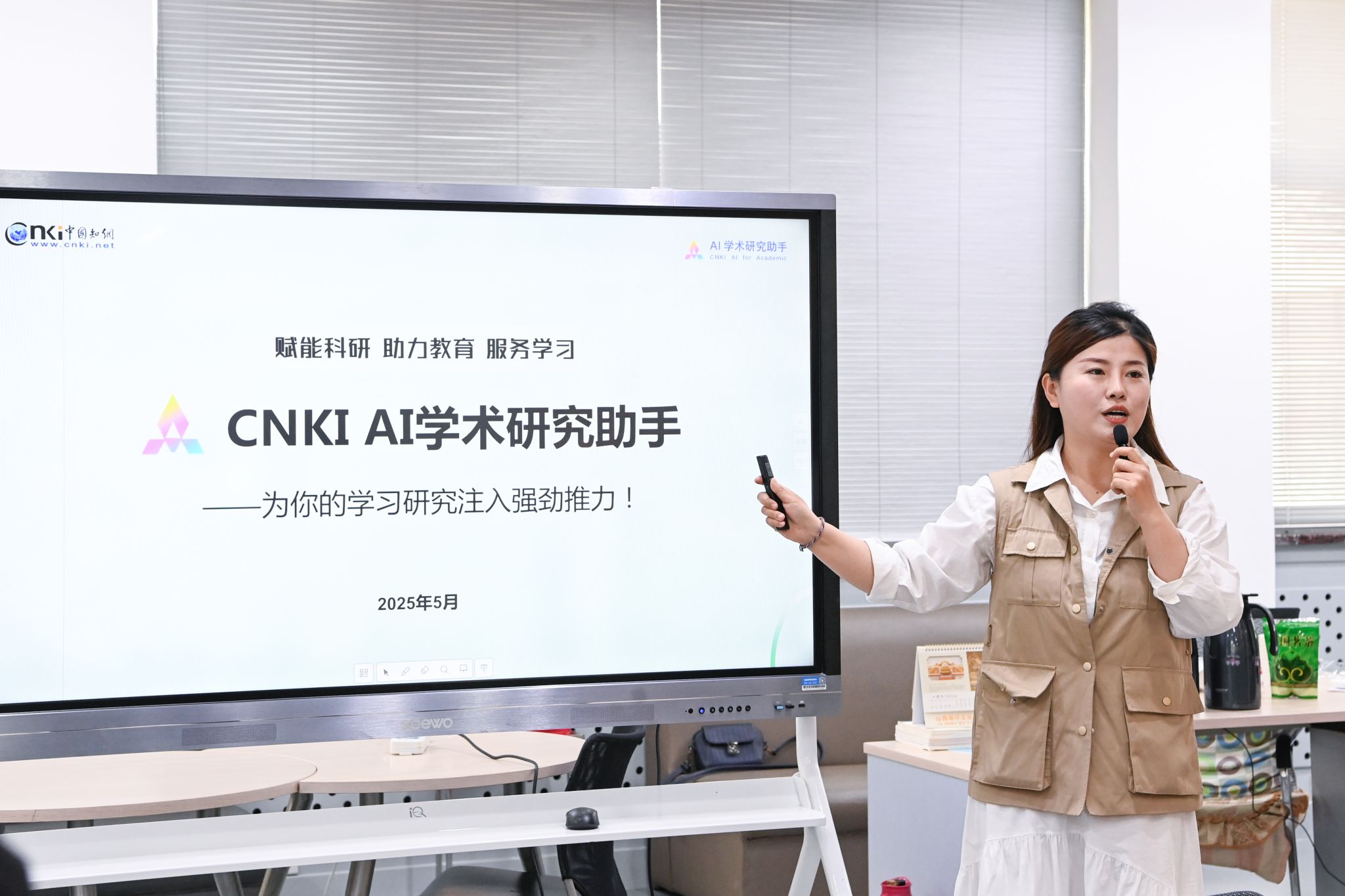技术赋能破壁垒,精准服务解难题。针对前期调研中我校师生在使用AI 大语言模型时普遍面临的“知识幻觉”痛点问题,本次活动特邀同方知网段雅辰老师为大家作了“赋能科研 助力教育 服务学习”专题报告。段老师详细介绍了由同方知网和华为共同打造的 CNKI AI学术研究助手的特色与显著优势,深度解析了该助手如何以“专业文献库+智能校验链”双轮驱动,有效破解“知识幻觉”这一学术性难题。现场,段老师还演示了 CNKI AI学术研究助手“学术检索-辅助研读-辅助创作-苹果树智能体”的基本功能,并以生成一篇文献综述为例,展示了“精准提问- 智能生成-校验优化-成果导出”的四步操作方法。同时,段老师耐心回答了大家提出的问题和疑虑,引领大家深入了解CNKI AI学术研究助手。