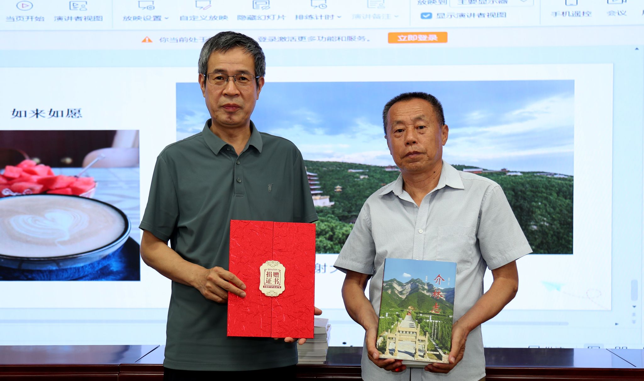 典籍传薪承古韵,书香化人启新章。冀晓峰老师向我校捐赠《太原最有文化的33处美景》《太原文化美景》《讲述·太原历史文化撷英》《品读太山》《品读龙山》《听得见的博物馆》《晋阳国宝》等7册图书,北京大学三晋文化研究会理事景茂礼老师向我校捐赠了《介林志》《寒食节与灵石》《介子推与灵石》等3册图书。校党委委员、副校长冯东元代表学校接收了图书,并为他们颁发了捐赠证书,并向他们致以诚挚的谢意。他指出,捐赠图书是“将三晋文化基因注入青年血脉”的生动实践,有助于学生从典籍中汲取文化自信的力量,成为“知太原、爱太原、兴太原”的新时代建设者。