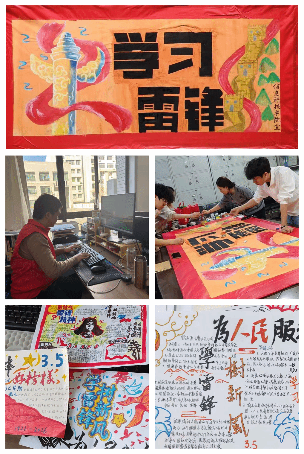 从校园服务到生活实践,从爱心帮扶到科技便民,信院学子主动化身志愿先锋与技术达人,把雷锋精神化作校园里的实际行动。信息科技学院的志愿者走进校园宿舍、教室和办公室,开展电脑义诊、系统维护、网络安全科普,为师生解决设备难题;同时积极参与学习雷锋精神征文撰写、板报绘画、用点滴行动点亮校园文明底色。