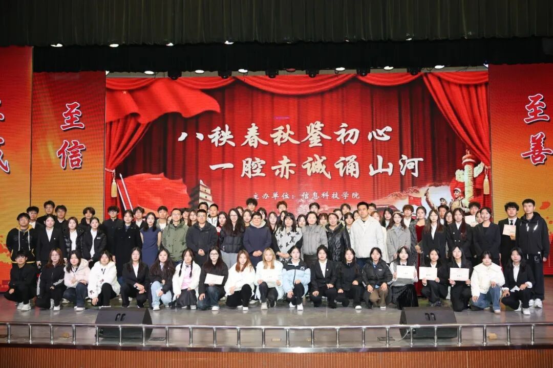 八十载春秋风雨,沉淀民族脊梁;八十载山河巨变,镌刻不朽信仰。烽火岁月的赤诚坚守,如青铜铭文愈久弥新,成为代代相传精神的密码。为铭记历史、缅怀先烈、珍爱和平、开创未来,传承和弘扬伟大抗战精神,凝聚民族复兴磅礴力量,岁末12月,信息科技学院成功举办“八秩春秋鉴初心,一腔赤诚诵山河”红色经典诵读大赛。党总支书记程瑞萍、副书记柳菁以及辅导员出席大赛并担任评委,与全院学子共同聆听红色回响,感悟初心使命。