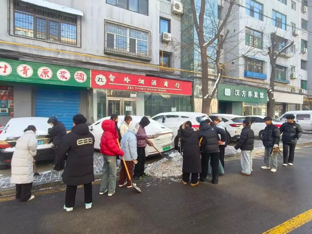 温情有声,责任铸就最美风景雪落无声,温情有声。经过两个小时的奋战,气化街左右人行道的积雪积冰被清理干净,非机动车道上整齐堆放的雪堆为后续作业车作业做好了充分准备。那些挥舞扫帚的身影、那些传递力量的双手、那些温暖彼此的笑容,那些忙碌的身影,那些传递温暖的瞬间,不仅定格成冬日里最美的风景,更成为信息科技学院精神文明建设的生动注脚。师生们用行动传递的不仅是互助的温暖,更是青年一代的责任与担当。这场志愿行动,不仅保障了城市道路畅通,更拉近了学校与社区的距离,展现了高校服务地方的责任担当。