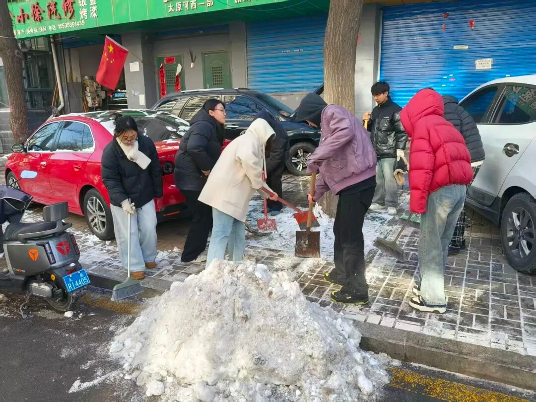 信息科技学院积极组织师生开展扫雪除冰志愿服务,在寒冬中为城市清洁、师生安全保驾护航,展现了青年责任担当。扫雪护行,情暖冬日“雪落龙城裹银装,清雪除冰践担当”。近日,太原市普降瑞雪,为积极响应城市号召,学院第一时间发布活动通知,信息科技学院迅速行动,号召在校班级每班组成志愿服务队,秉持责任意识,重点对学校周边气化街左右人行道、非机动车道及背街小巷等公共区域开展清雪除冰工作。12点半,参与活动的师生已带着手套、帽子等防寒装备,在2号宿舍楼下整齐集结,一场以“保畅通、护安全”为目标的扫雪除冰行动正式启动。