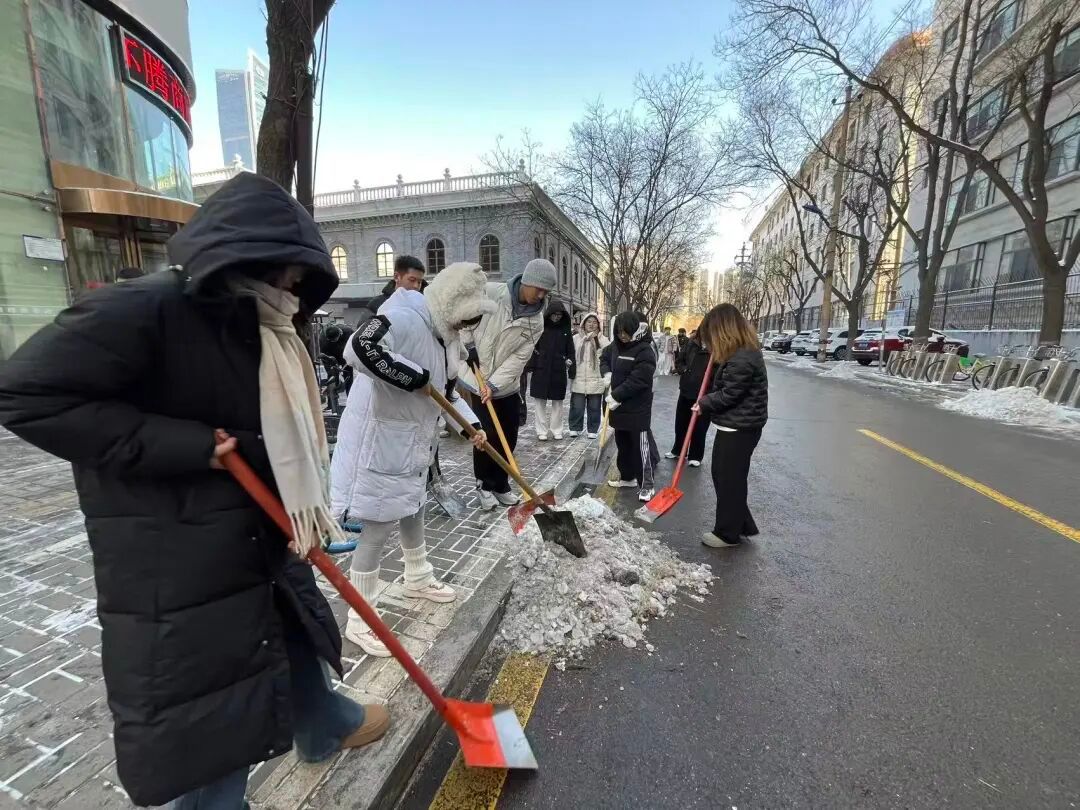 学生干部带头,青春担当学生干部们则主动扛起“领头旗”,带领各自班级的志愿服务小组分散到气化街各个路段。他们严格遵循清雪要求,两人一组配合默契,整个过程有条不紊。尽管脸颊被冻得通红,手套和鞋子沾满雪水,但没有一名同学退缩,青春的活力与担当在雪地里尽情绽放。