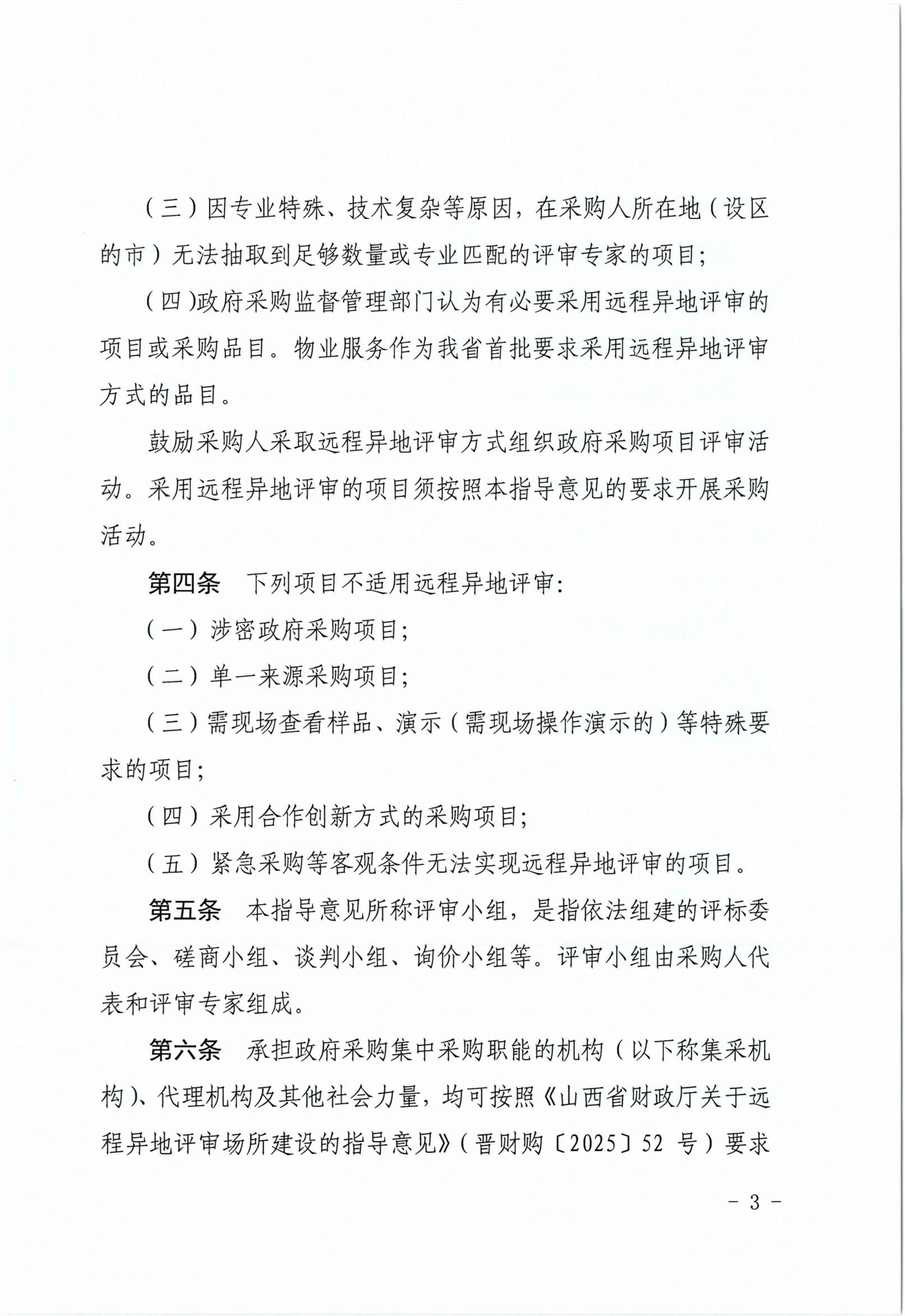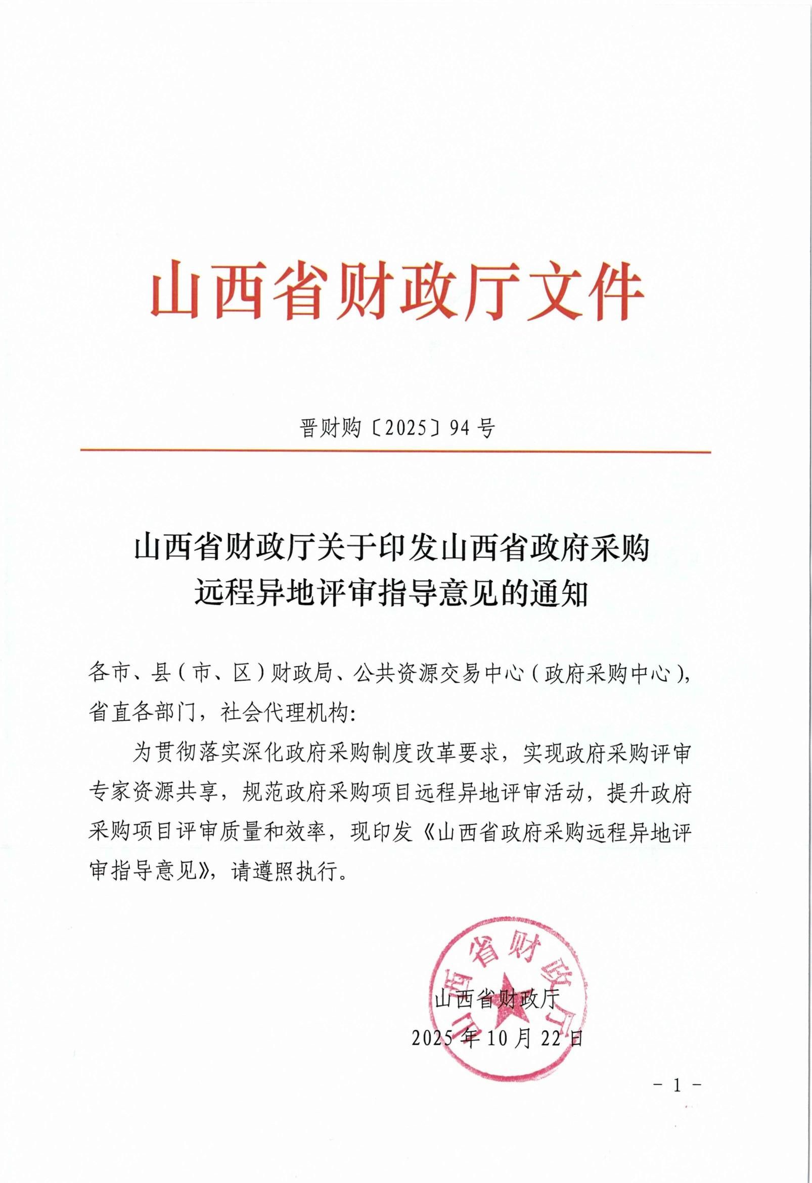 山西省财政厅关于印发山西省政府采购远程异地评审指导意见的通知