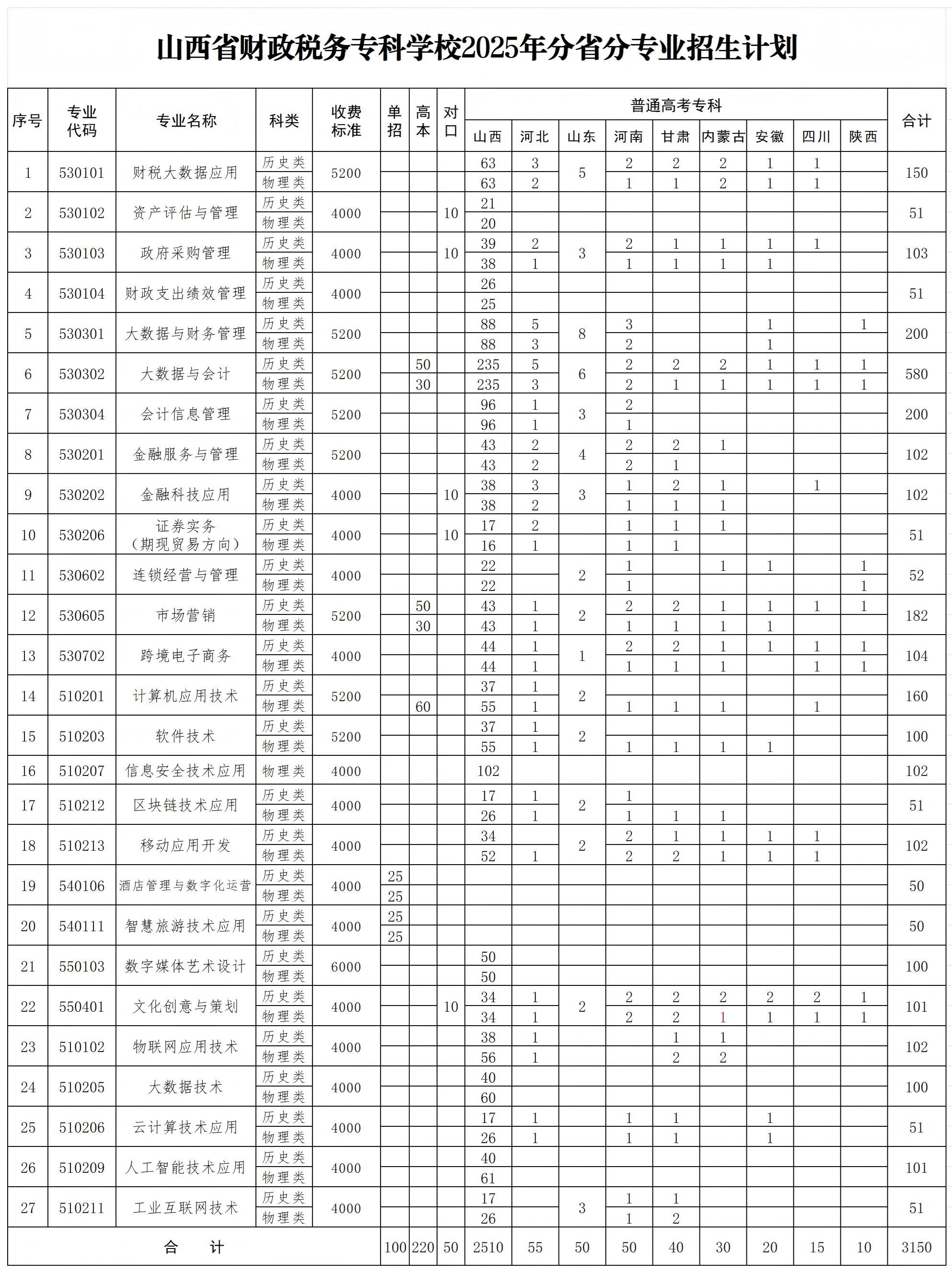 2025年分省分专业招生计划